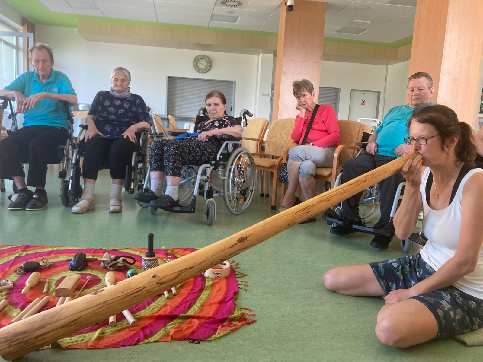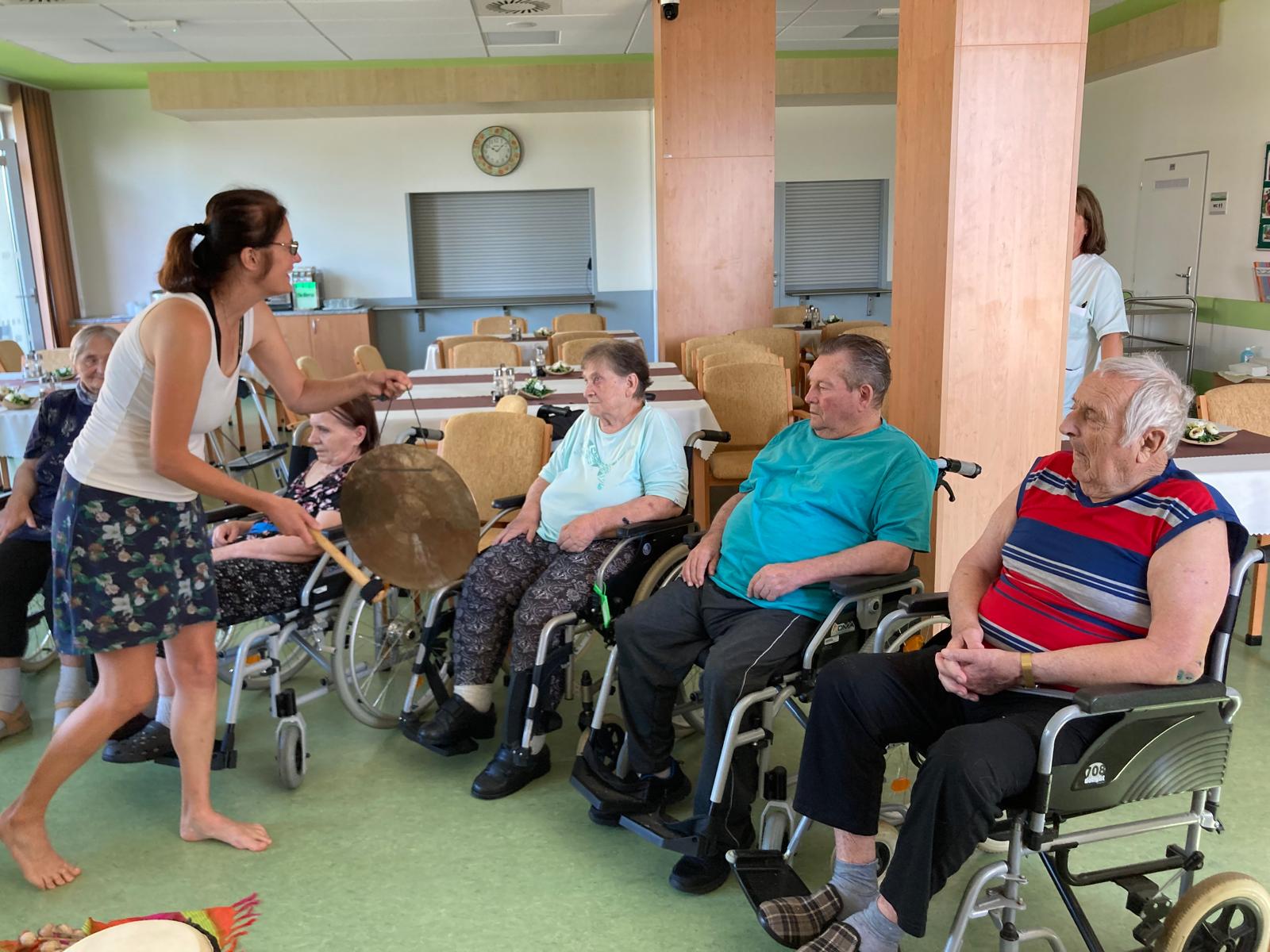Opět nás navštívila paní Mgr. Alena Svobodová, terapeutka celostní muzikoterapie, která si připravila program pro naše obyvatele, tentokrát na A Pavilonu.