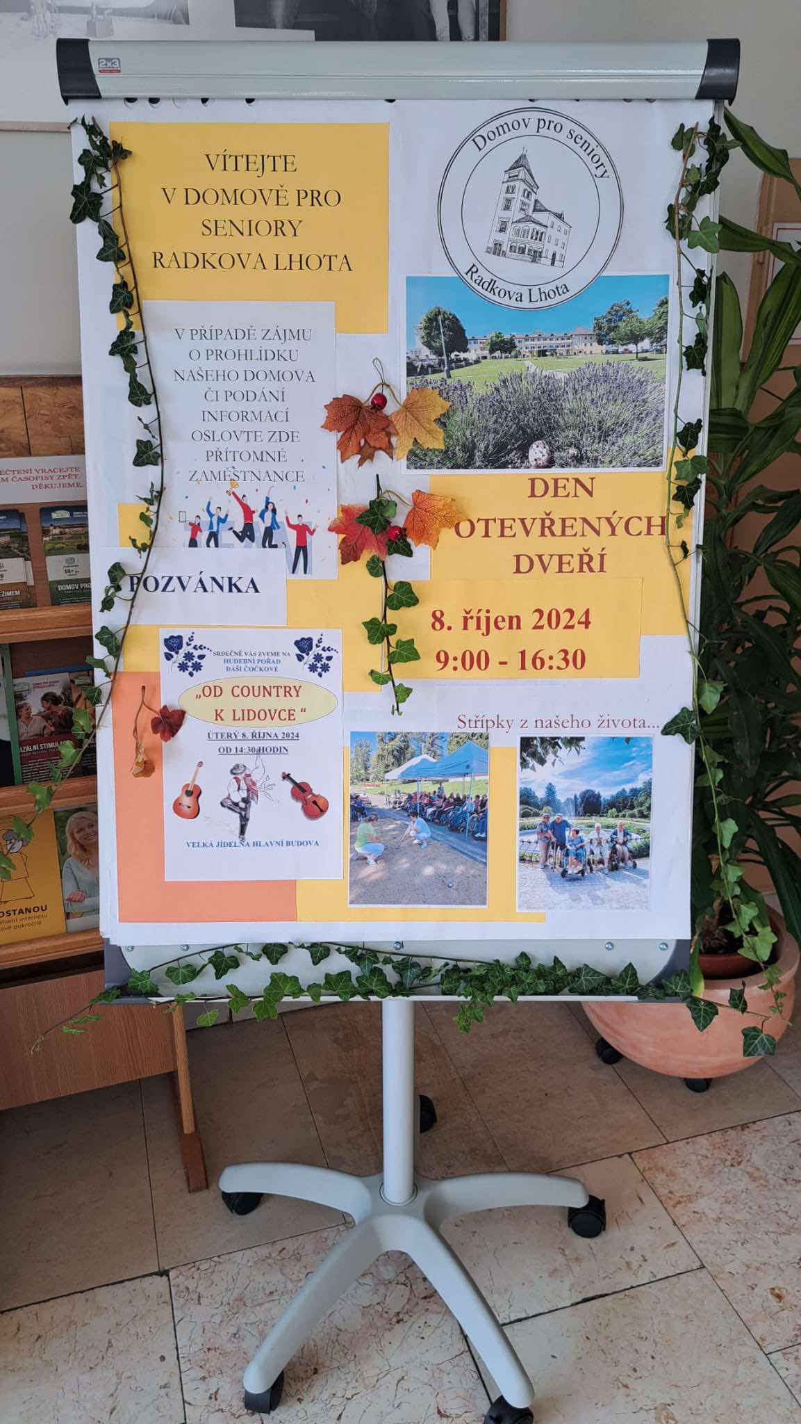 Den otevřených dveří v Domově pro seniory Radkova Lhota proběhl 8. října 2024. Návštěvníky po celou dobu, od 9:00 do 16:30, provázely naše sociální pracovnice, které jim poskytly veškeré informace o chodu domova a službách, které nabízíme. Mezi největší lákadla patřila ukázka canisterapie a tvořivá dílna s keramikou, kde si hosté mohli vyzkoušet vlastní kreativní tvorbu. Atmosféra byla velmi přátelská a návštěvníci odcházeli s novými zážitky i lepším povědomím o péči, kterou našim klientům poskytujeme.