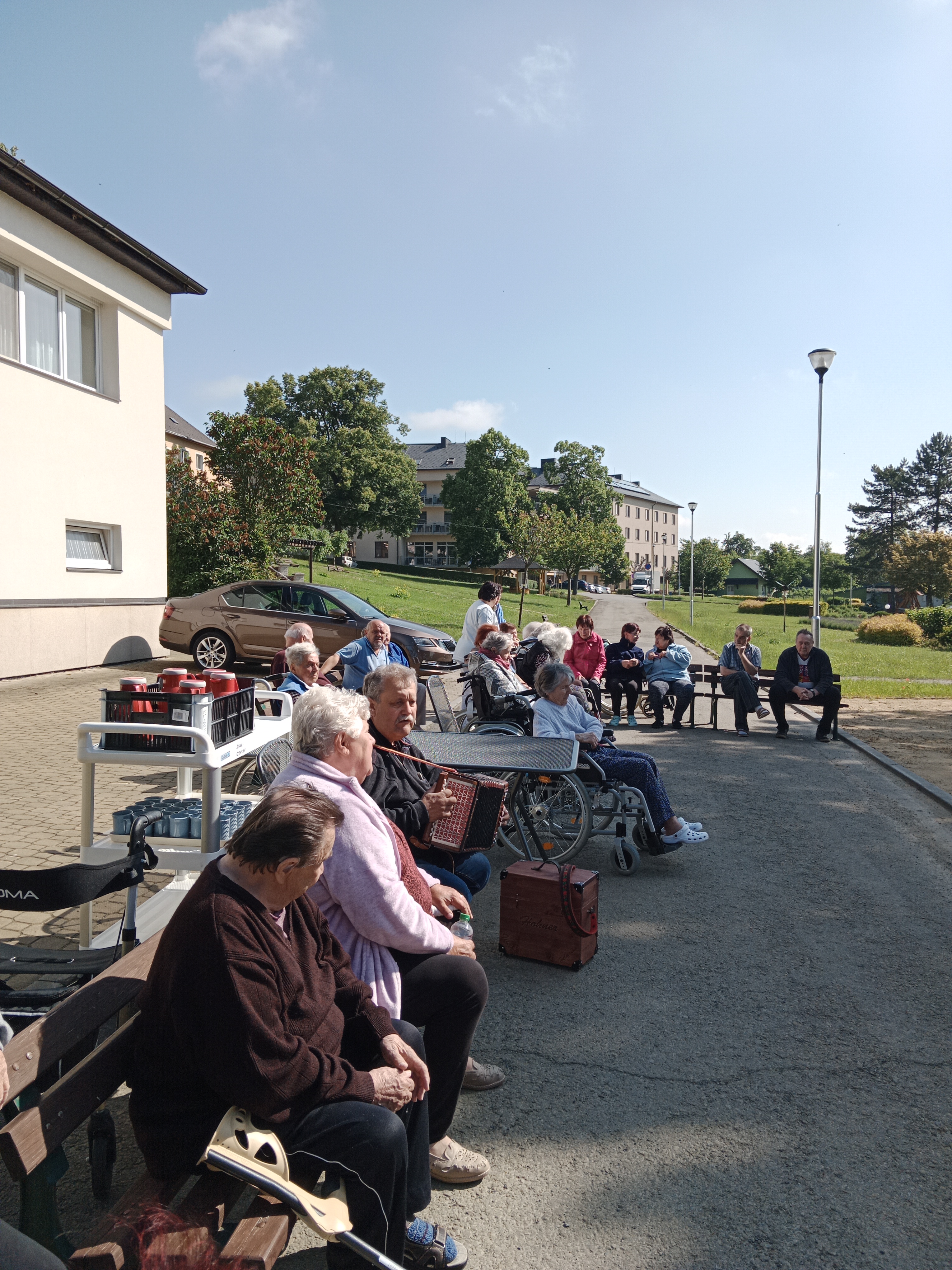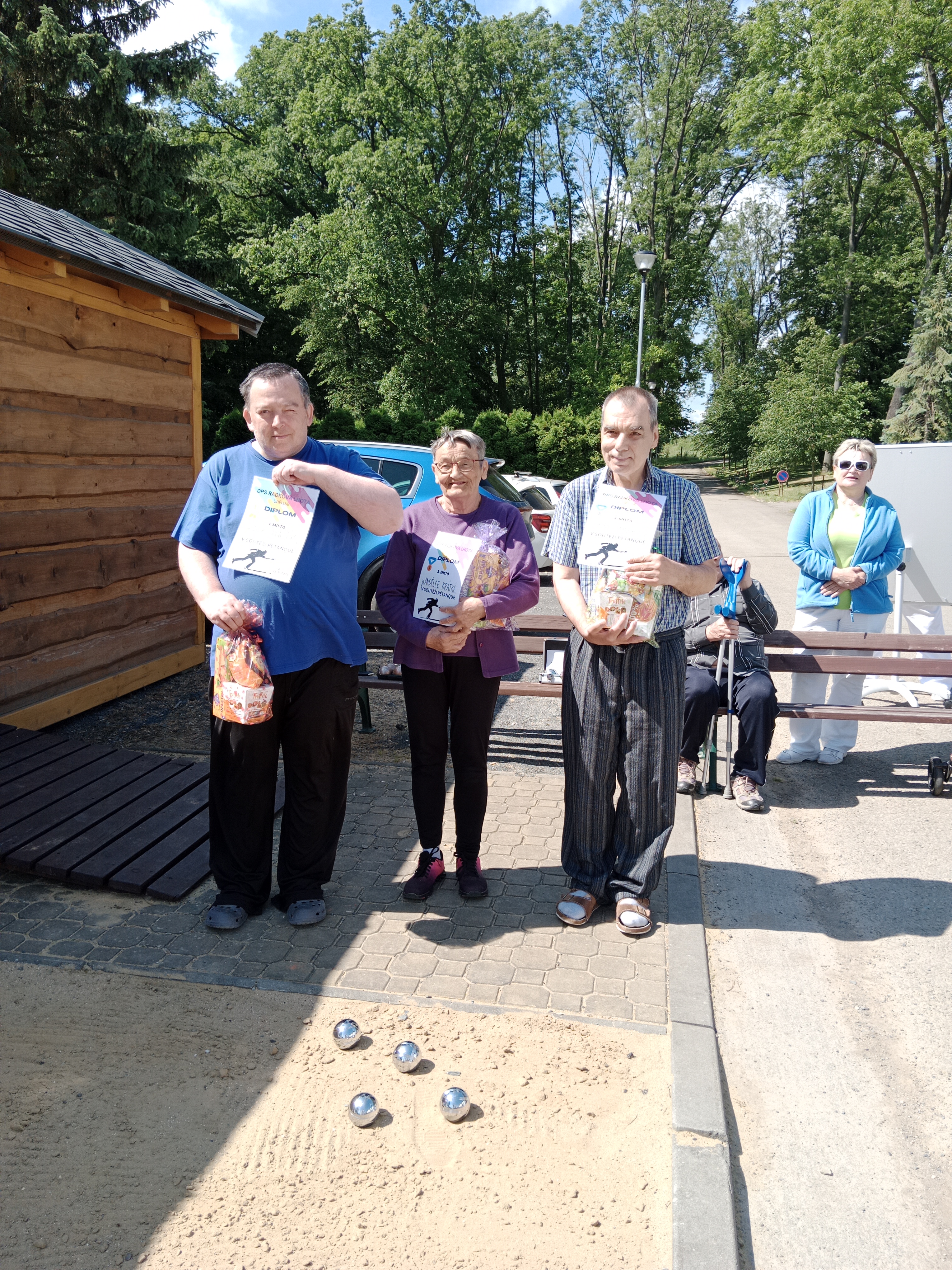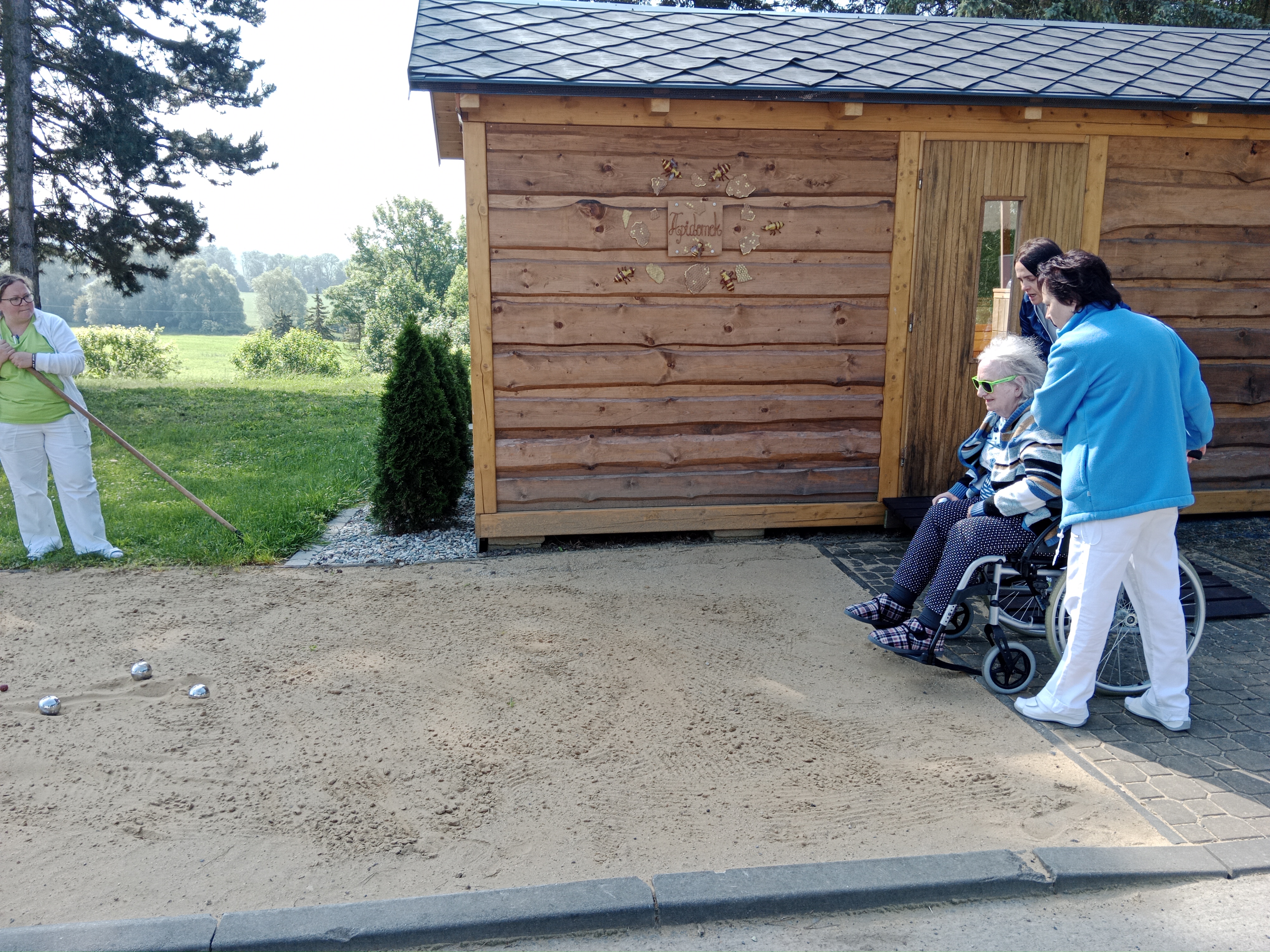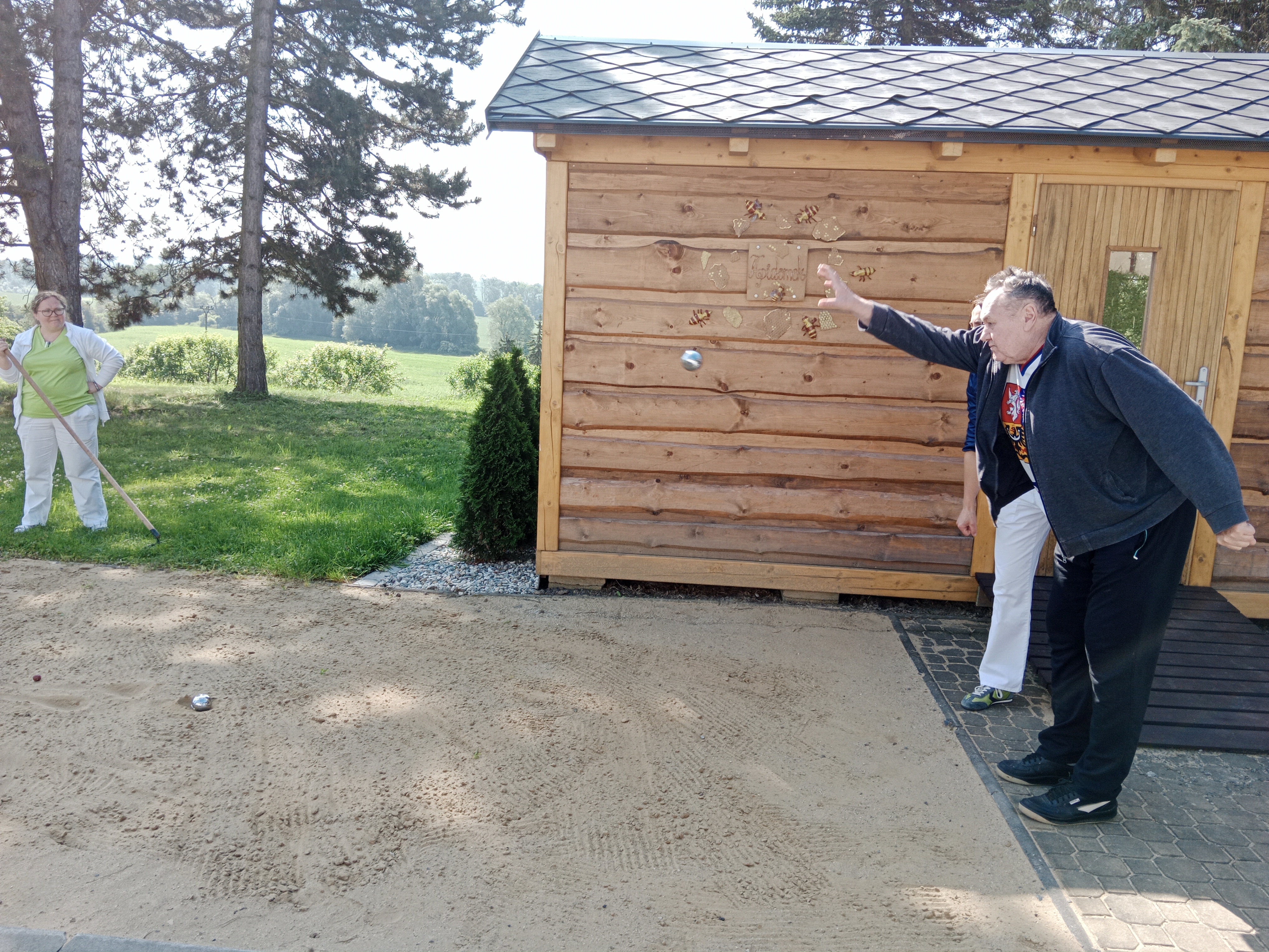 Ve čtvrtek 15. června se konal domovský turnaj ve hře pétanque, což je francouzská společenská hra pro družstva, která se snaží umístit koule co nejblíže k cíli, který tvoří dřevěná kulička, tzv. prasátko. Aby šlo házení koulí lépe od ruky, vyhrával nám k tomu na harmoniku pan Nečacký.