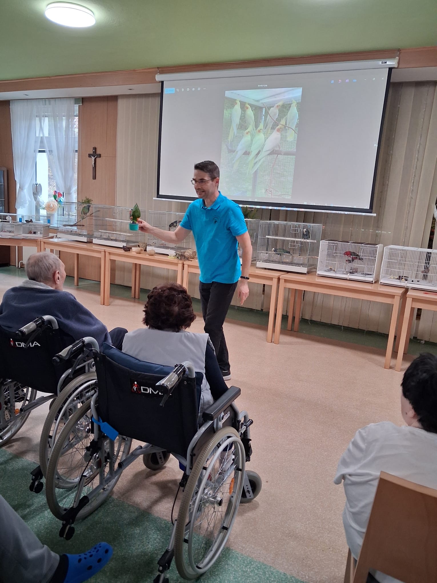 Po roce jsme měli tu čest opět v našem Domově přivítat odborníka na chov exotických ptáků pana RNDr. Jaromíra Vachutku. Jeho návštěva je pro nás vždy výjimečnou událostí, na kterou se klienti velmi těší.