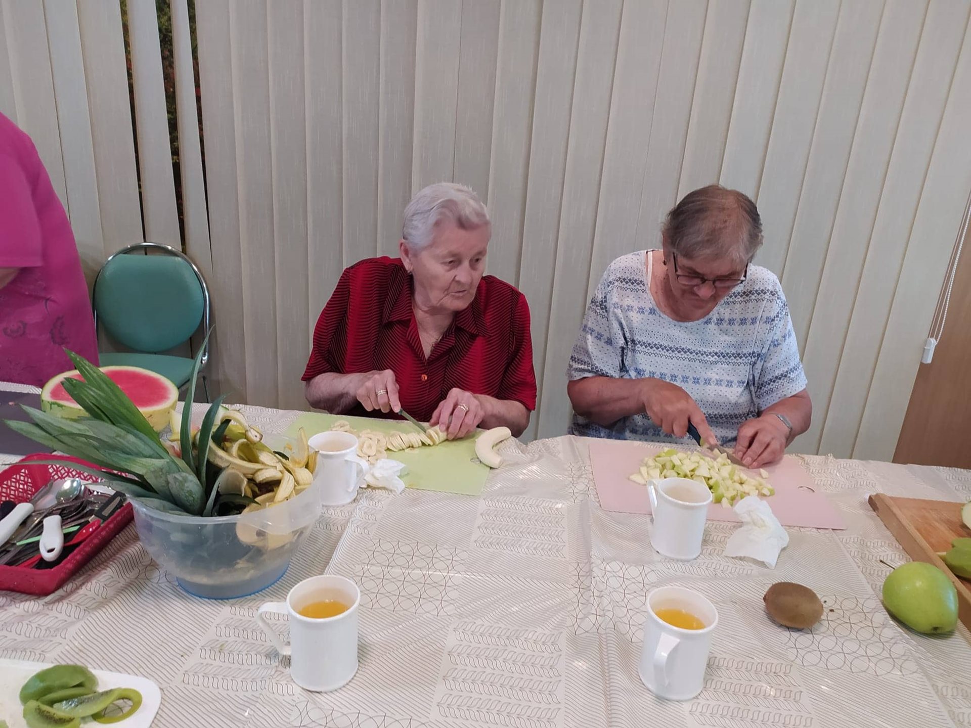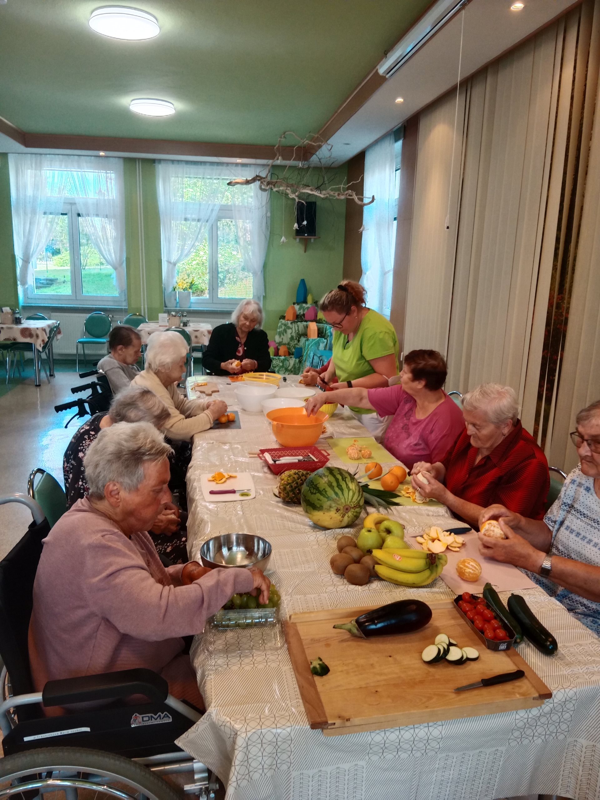 Povídání o blahodárném vlivu ovoce a zeleniny, grilování různých druhů a příprava ovocného salátu - to vše čekalo na naše klienty v úterý 7. června ve velké jídelně na Hlavní budově.