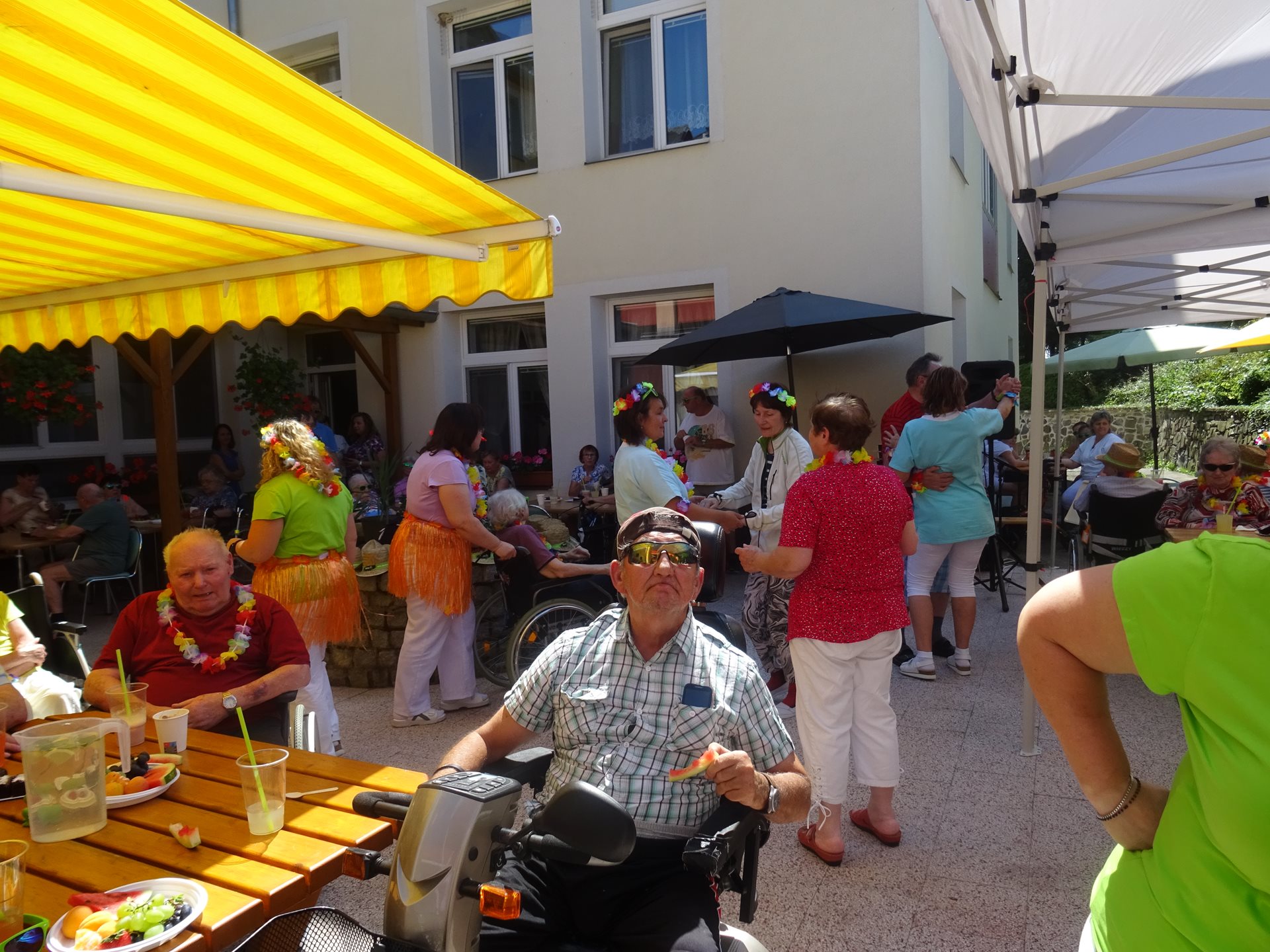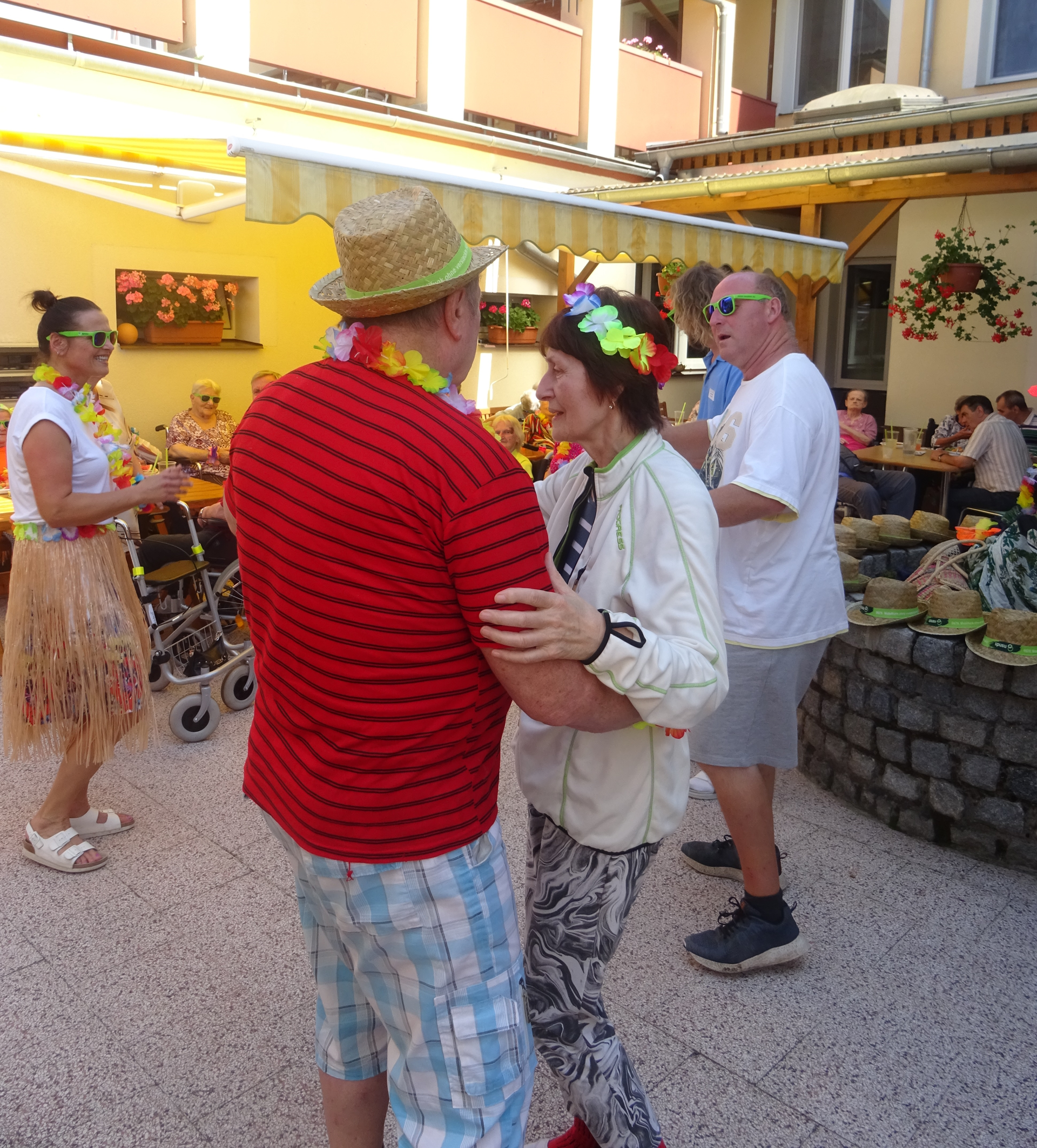 V prosluněnou pláž se proměnilo atrium na Hlavní budově ve středu 3. srpna. Hudba v podání paní Elišky Bolckové, několik druhů míchaných nápojů, zmrzlina a lahodné ovoce, to vše osvěžilo klienty i zaměstnance na Hawajské párty. Všechny přítomné zdobily květinové věnce, nechyběly ani nástroje jako rumba koule a chrastítka a v rytmu houpavých melodií jsme se alespoň na chvíli přenesli na polynéské ostrovy.