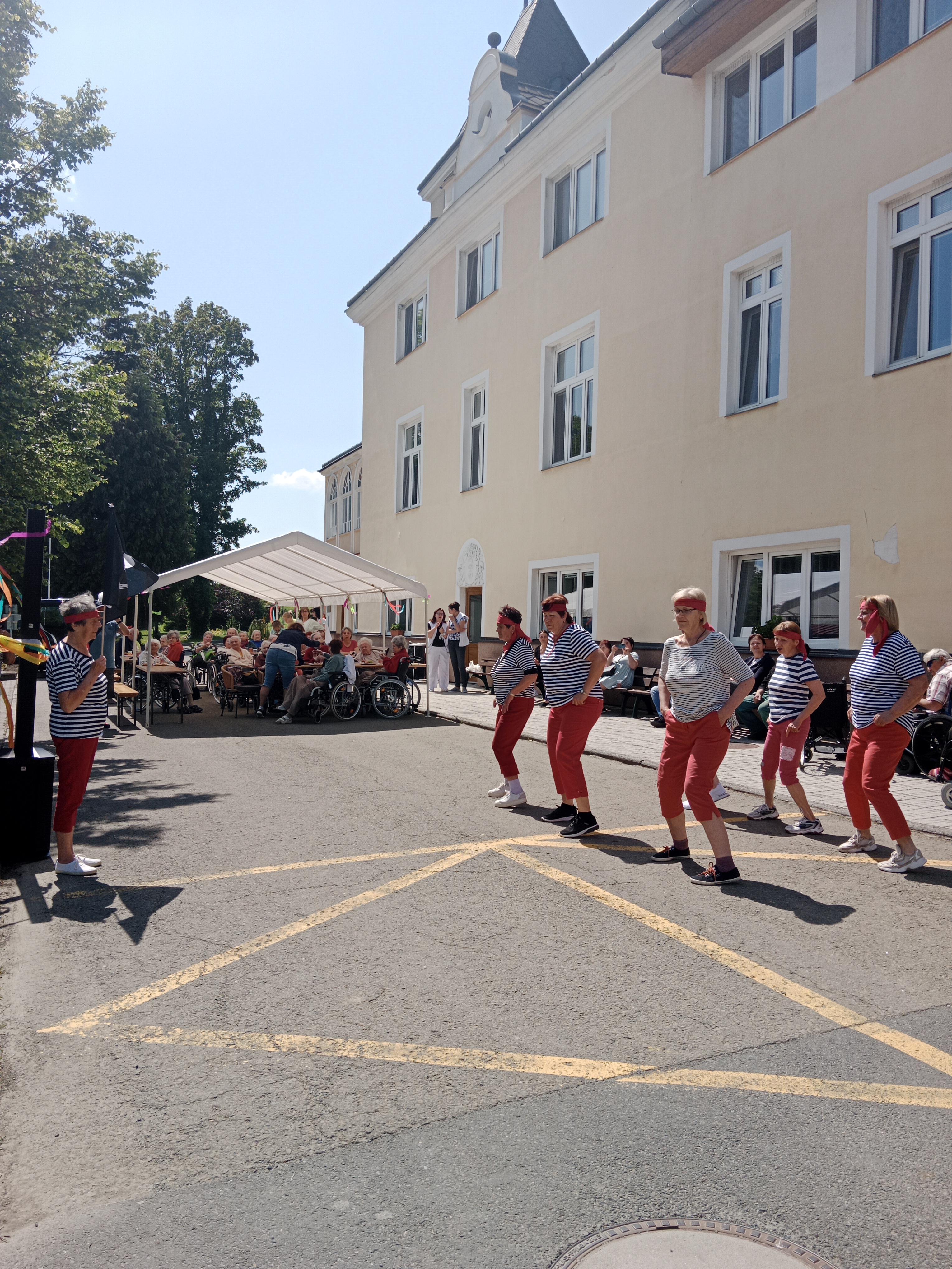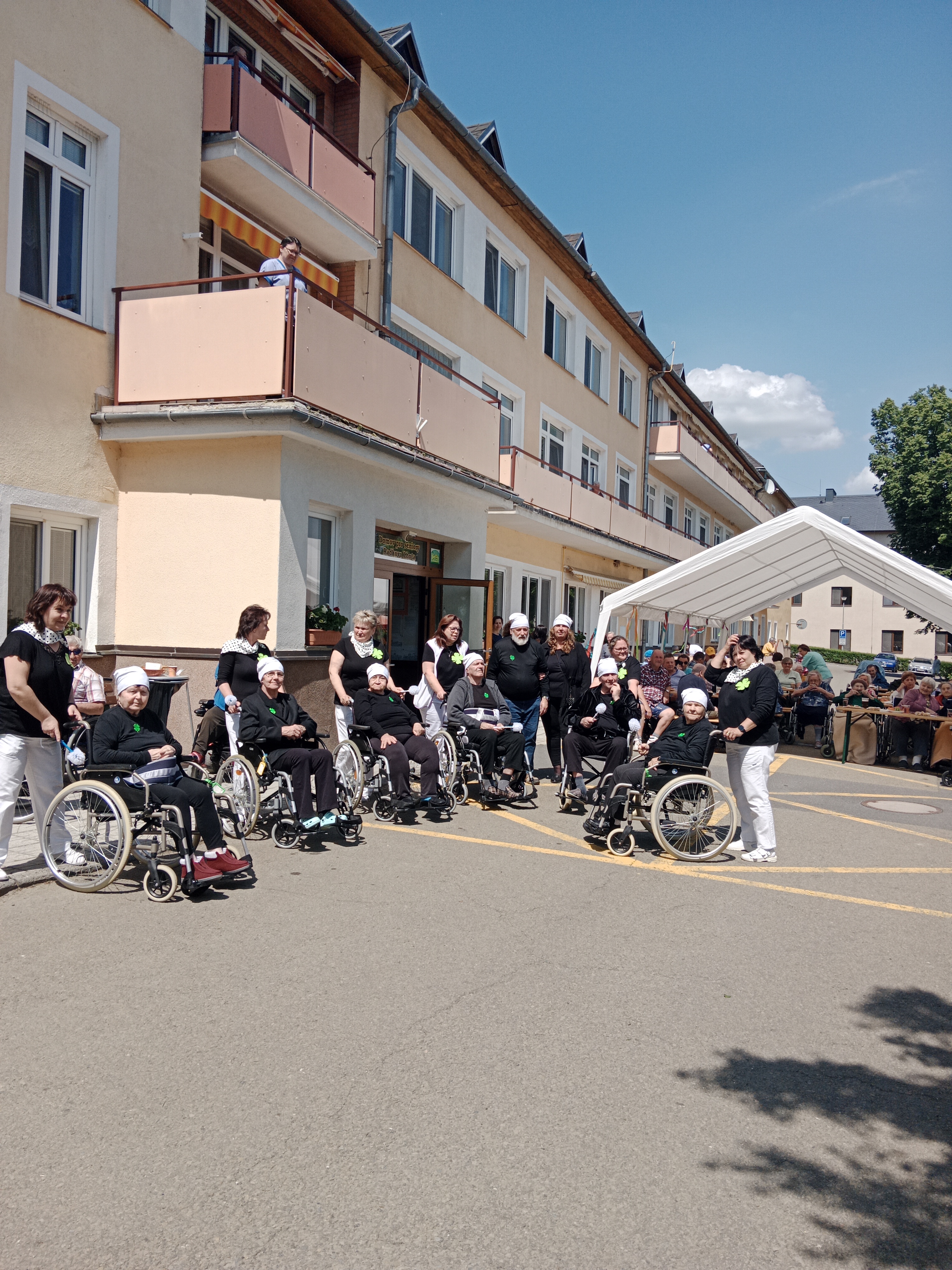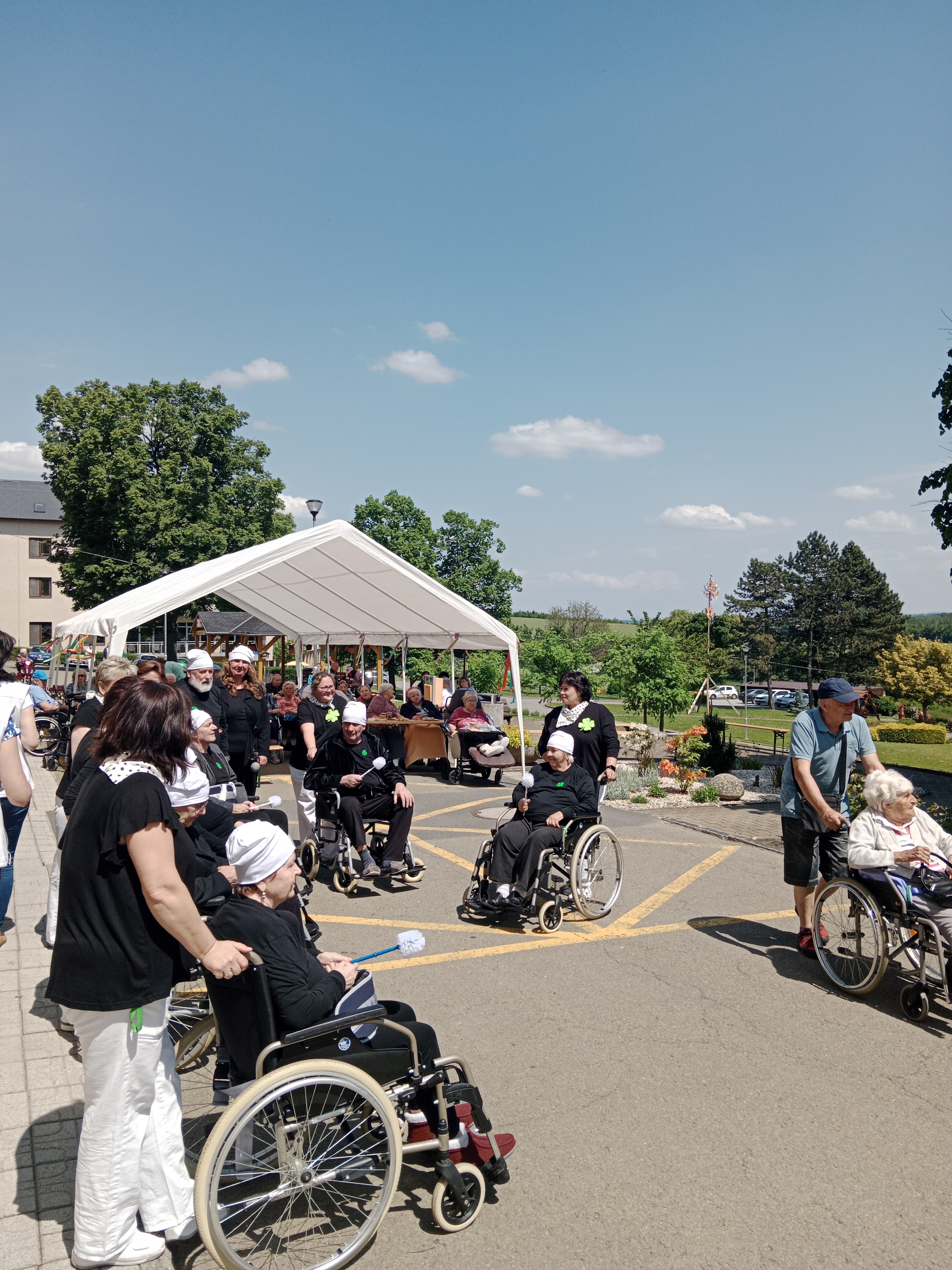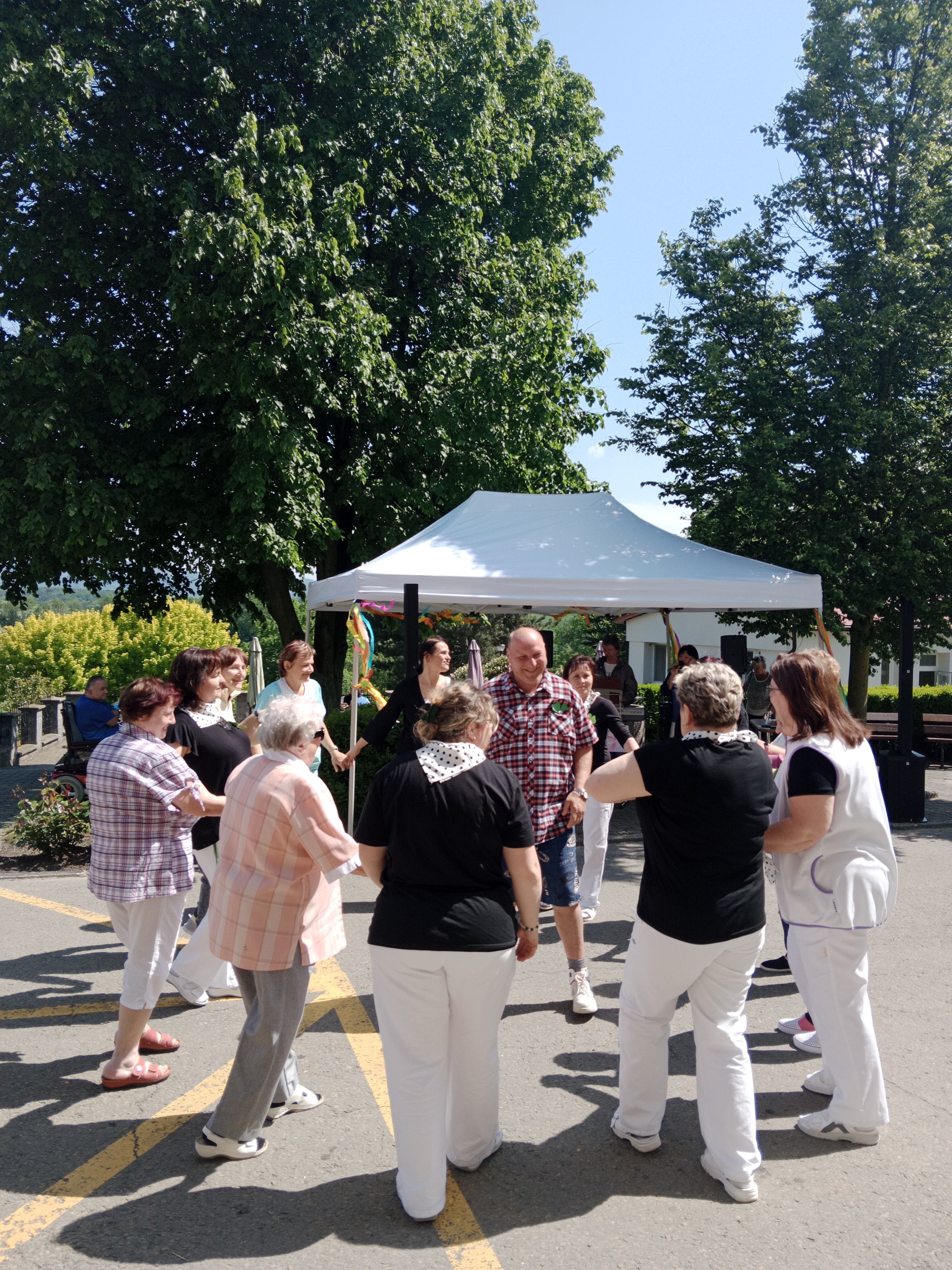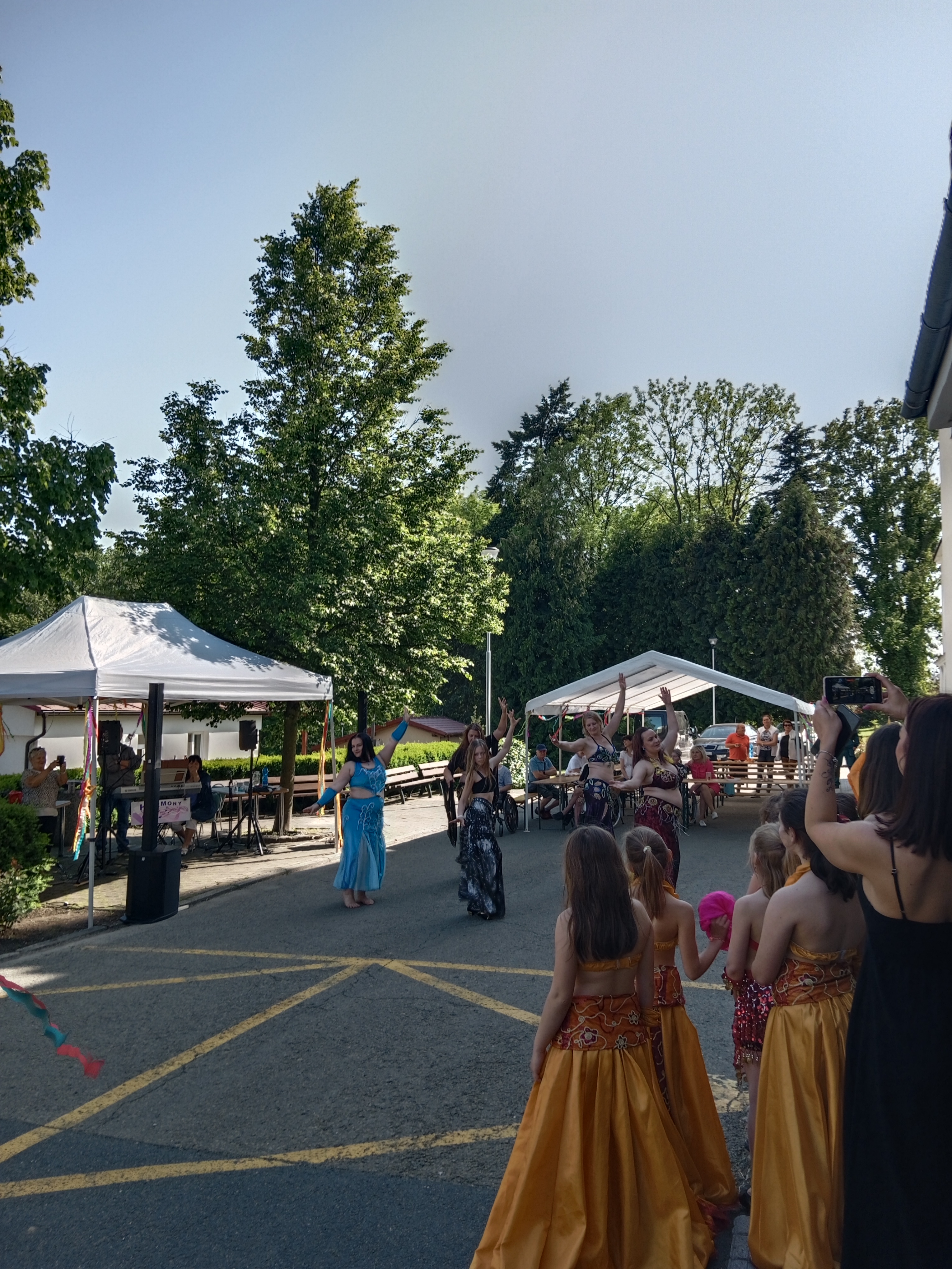 a užili si přitom spoustu zábavy a dobrého jídla a pití. Seniorky z Týna dokázaly svým tanečním vystoupením, že věk je pouze číslo, aktivizační pracovnice s klienty si zahráli na kominickou partu a vrcholem programu byly orientální tanečnice se svými ohebnými těly. Celé odpoledne vyhrávala skvělá kapela Harmony. K tomu dobroty z naší kuchyně, grilovaný kabanos a točené pivo, prostě den jako malovaný!