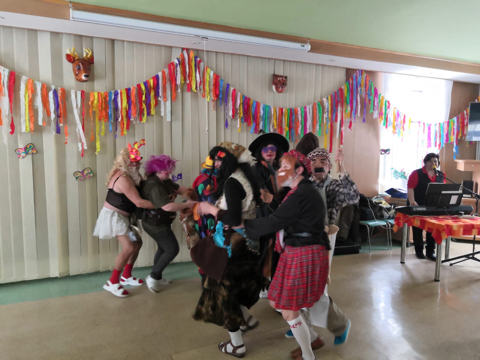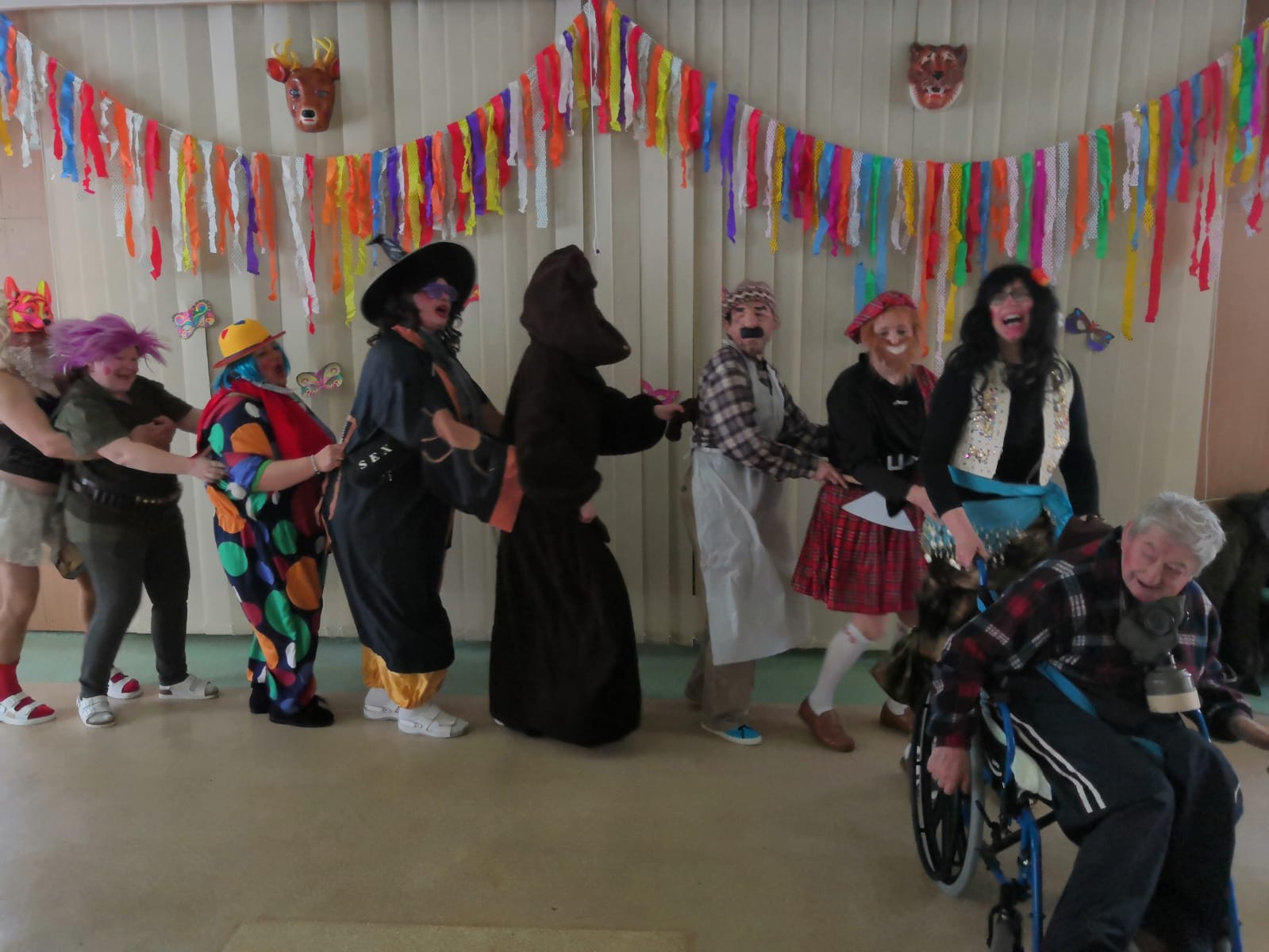 O tradiční masopust naši klienti nebyli ochuzeni. Skupina masek s medvědem je v pátek 12. února navštívila na pokojích, k chuti přišly koblížky i lahodný punč. Ve velké jídelně na Hlavní budově jim k tomu zahrála a zazpívala zkušená hudebnice, a protože bylo vystoupení přenášeno na televizní obrazovky klientů, mohli se tak potěšit opravdu všichni.
