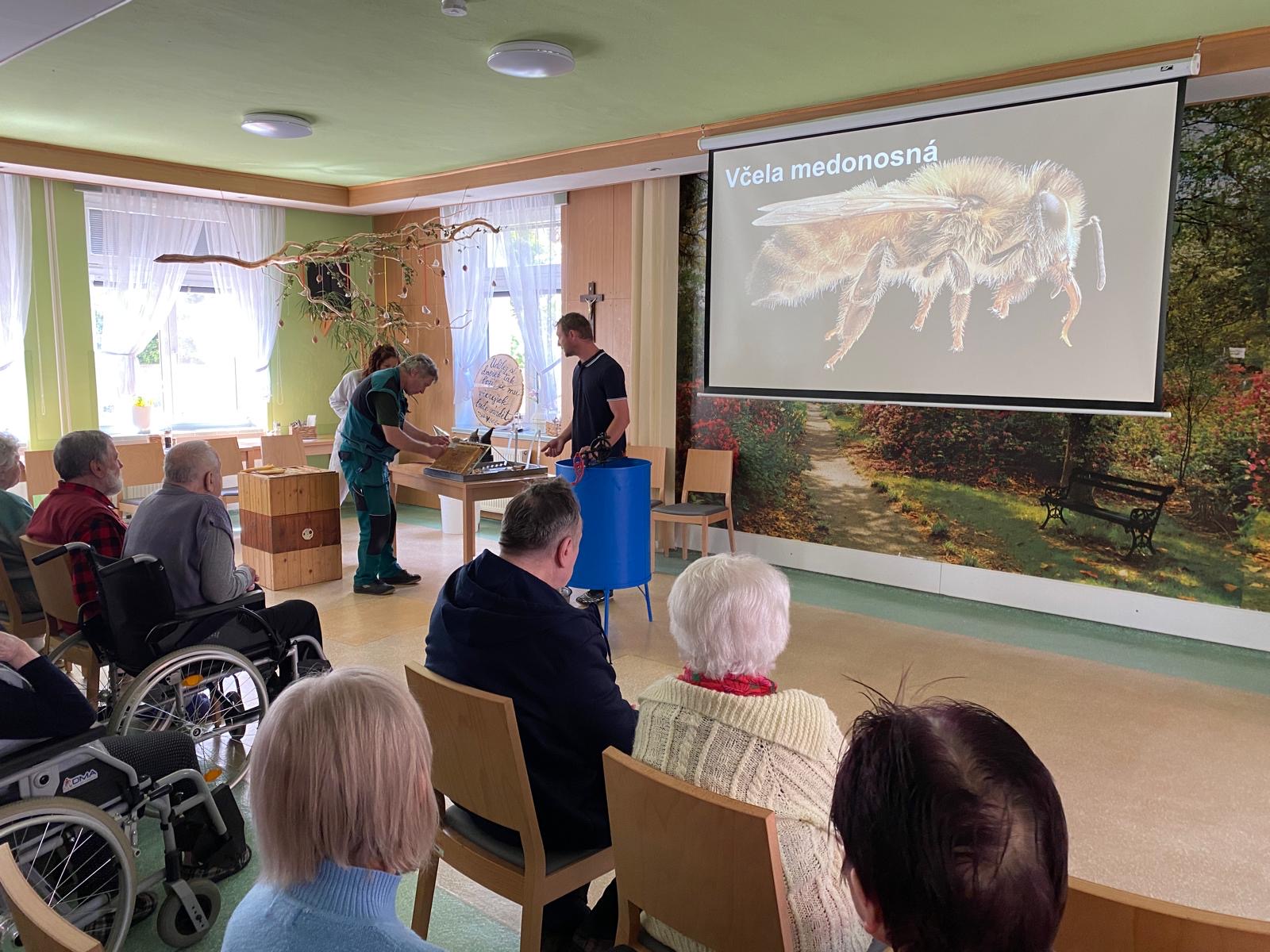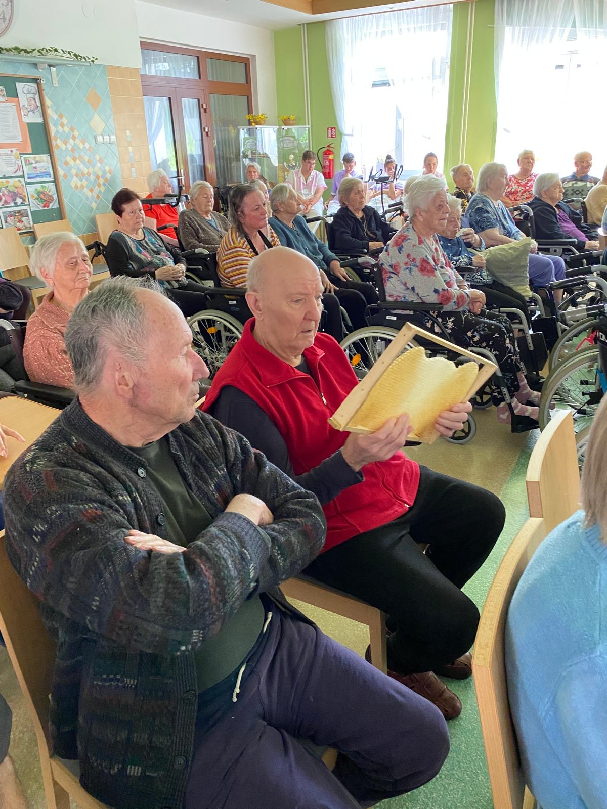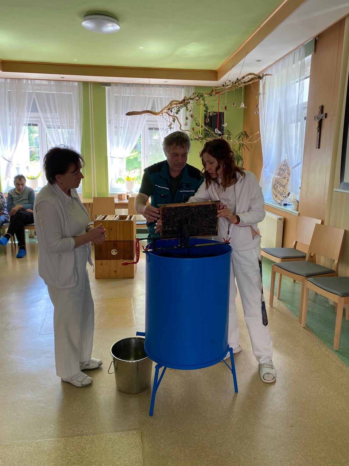 K oslavě světového dne včel jsme si v našem domově uspořádali medobraní. Včely jsou obecně považovány za jedny z nejpracovitějších a nejdůležitějších stvoření na světě s ohledem na skutečnost jak prospívají lidem, rostlinám, či celkovému životnímu prostředí. O chovu včel nám popovídal pan Miroslav Sehnal, pracovník našeho zařízení, který se právě této činnosti věnuje již několik let. Klienti tak měli nejen možnost nahlédnout do světa tohoto malého hmyzu, ale samozřejmostí byla také ukázka stáčení medu a nezapomnělo se ani na malou ochutnávku.