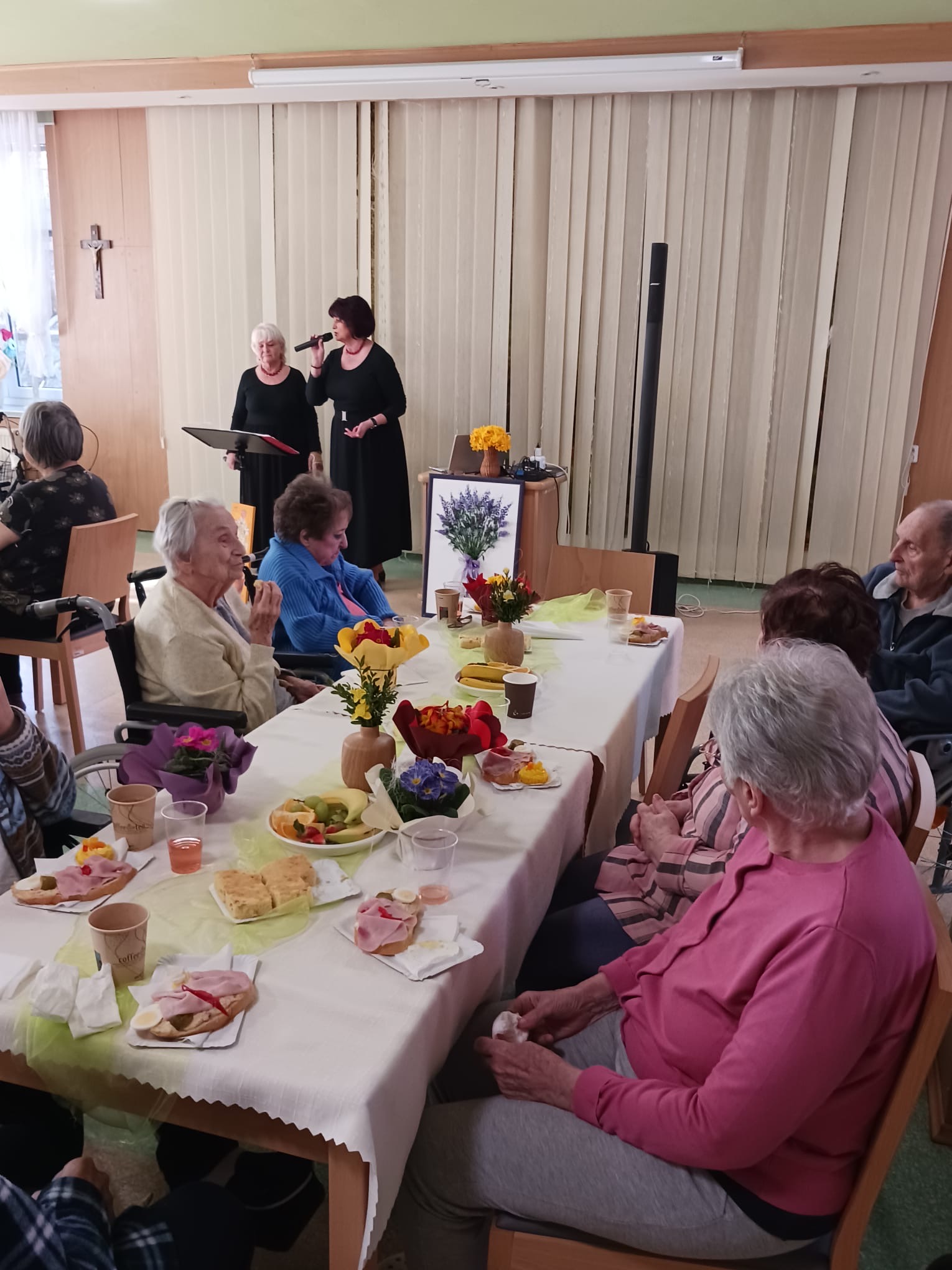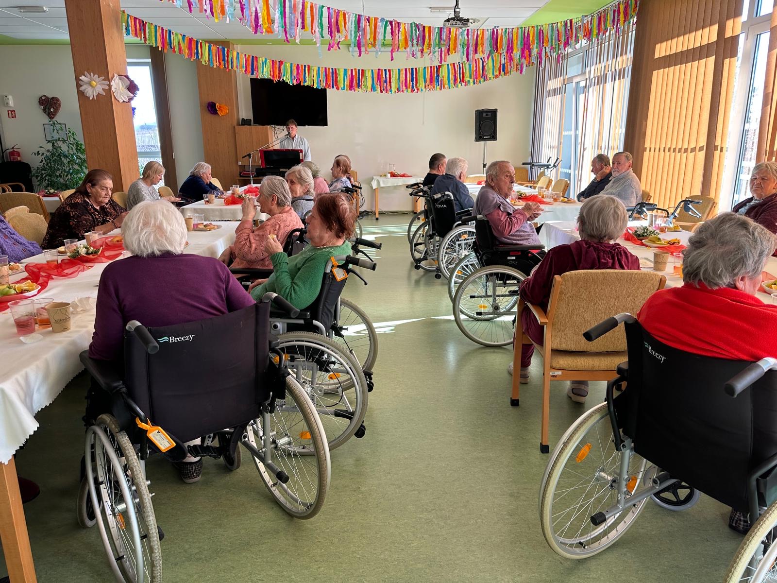 Oslavy Mezinárodního dne žen patří mezi tradiční a velmi oblíbené akce našich klientů. Letos se uskutečnily ve čtvrtek 5. března. Pro klienty bylo připraveno příjemné posezení s živým hudebním doprovodem. Klienty na hlavní budově potěšilo vystoupení paní Dáši Čočkové a paní Aleny Sábové. Na pavilonu A zahrál a zazpíval pan Vladimír Volek. Každá žena navíc dostala od našeho personálu květinu jako malé poděkování a milou pozornost k tomuto svátku.