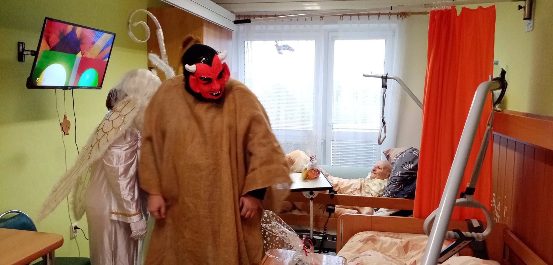 I letos se mohli klienti těšit na návštěvu sv. Mikuláše s družinou. Dárečky přinesli v pátek 4. prosince přímo na pokoje všech klientů.