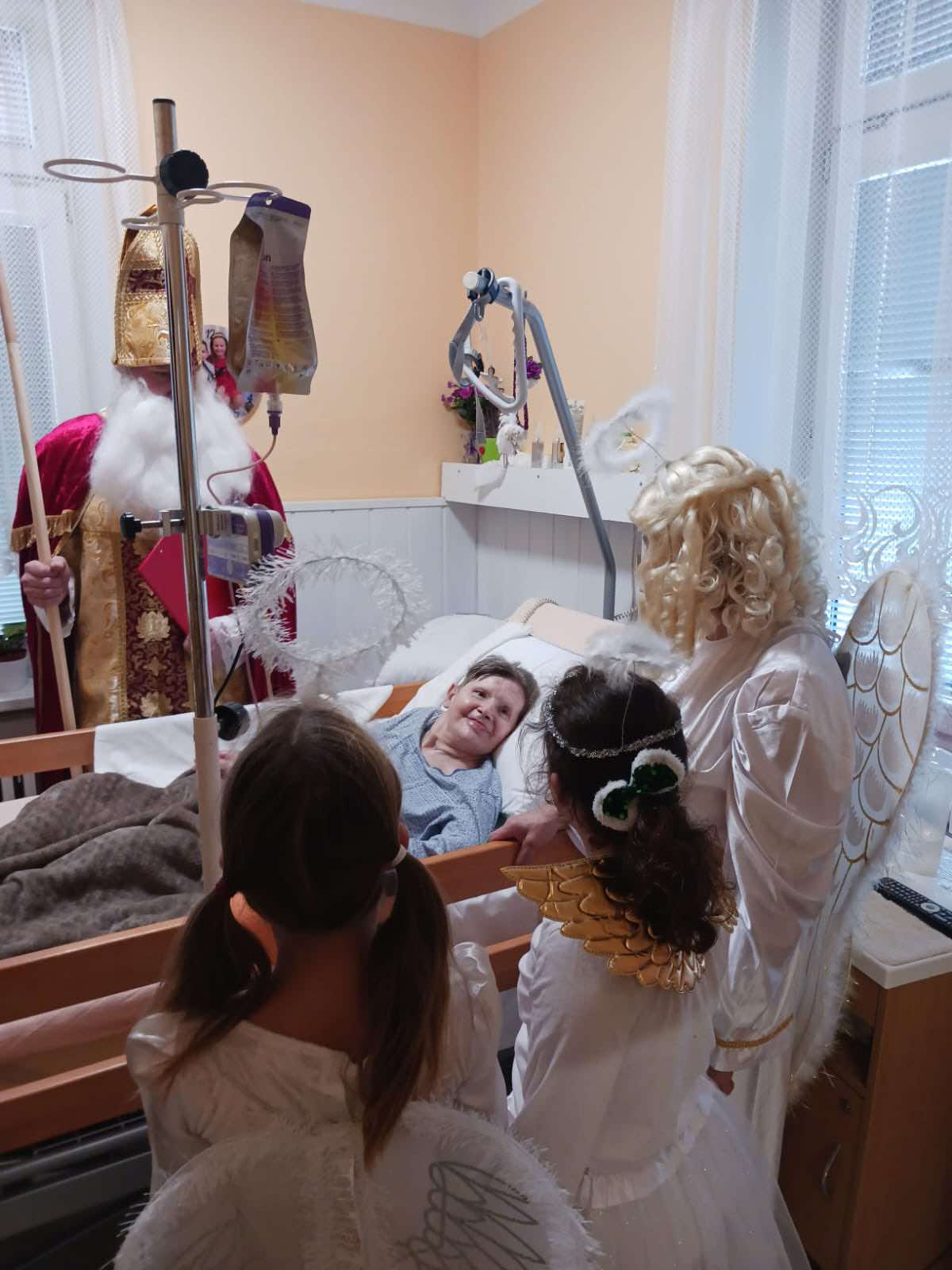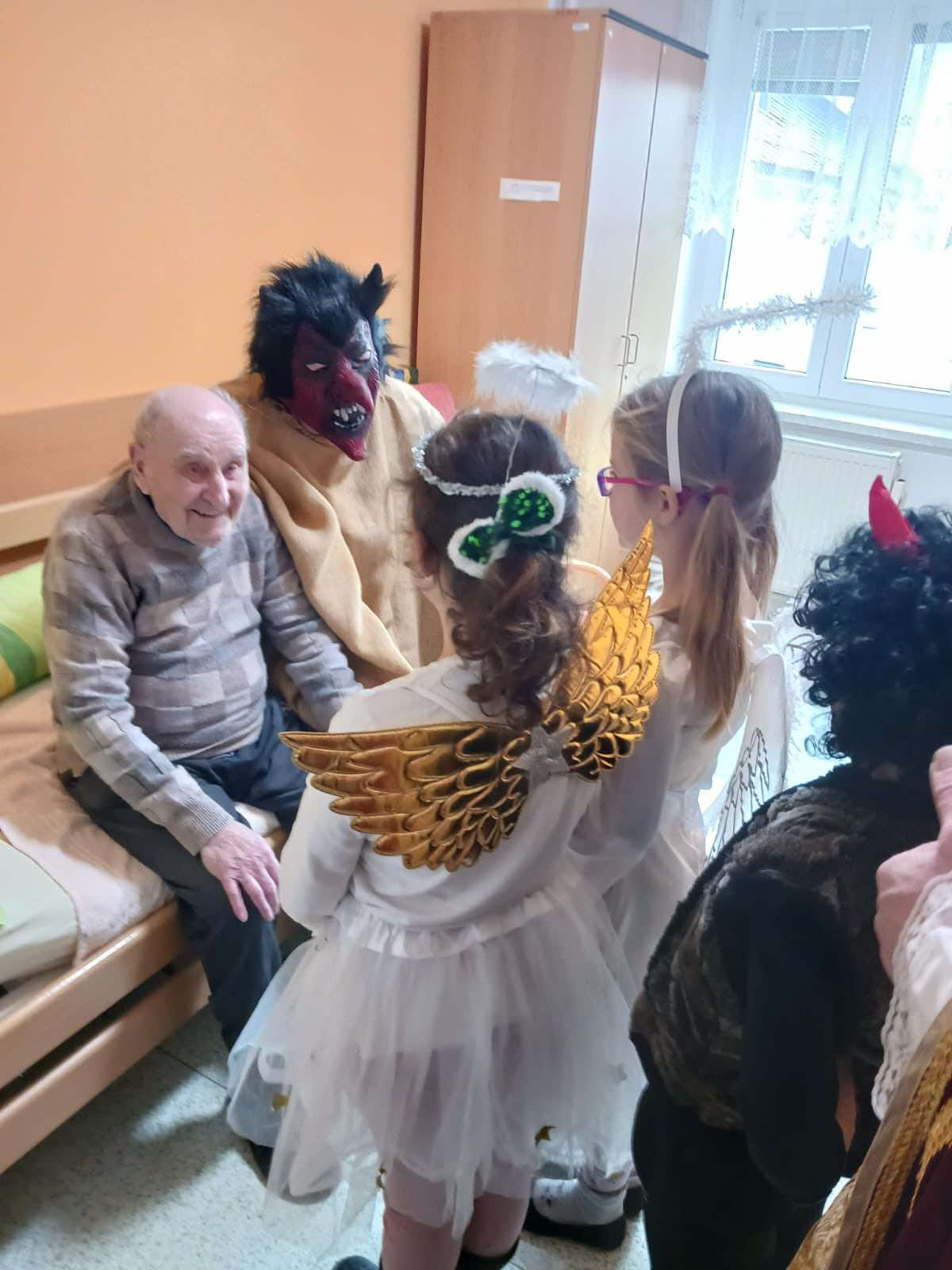 Do našeho domova již zavítal Mikuláš se svými pomocníky, andělem a čertem, aby potěšil naše klienty. Připraveny byly drobné dárečky, veselé povídání i chvíle plné úsměvů a vzpomínek na tradiční mikulášské oslavy. Celý den se nesl ve znamení krásné sváteční atmosféry a radostných okamžiků s Mikulášem, které si všichni velmi užili.