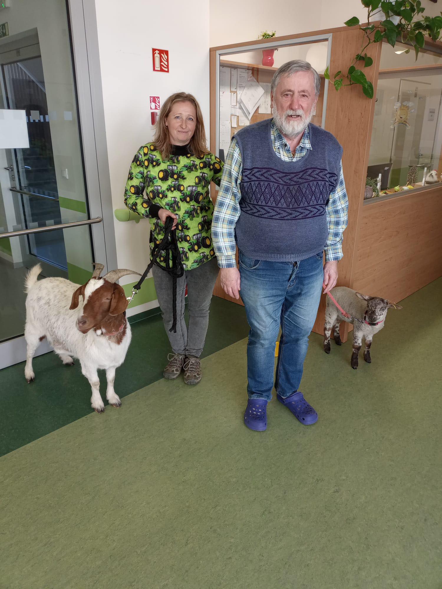 V předvelikonočním týdnu se na jednotlivých odděleních objevili nečekaní hosté - Ovečka Shaun, Králíček Ferda a Zakrslá Koza Róza! Tito veselí kamarádi přinesli do našeho domova nejen radost, ale i dávku veselí a pozitivní energie. Jejich přítomnost byla pro naše imobilní klienty zvláště důležitá, protože přinesli do našeho prostředí závan venkovského života a připomenuli nám, že i v domácím prostředí můžeme zažít dobrodružství a radost. Děkujeme jim za krásné chvíle a přejeme si, aby nás brzy zase navštívili!
