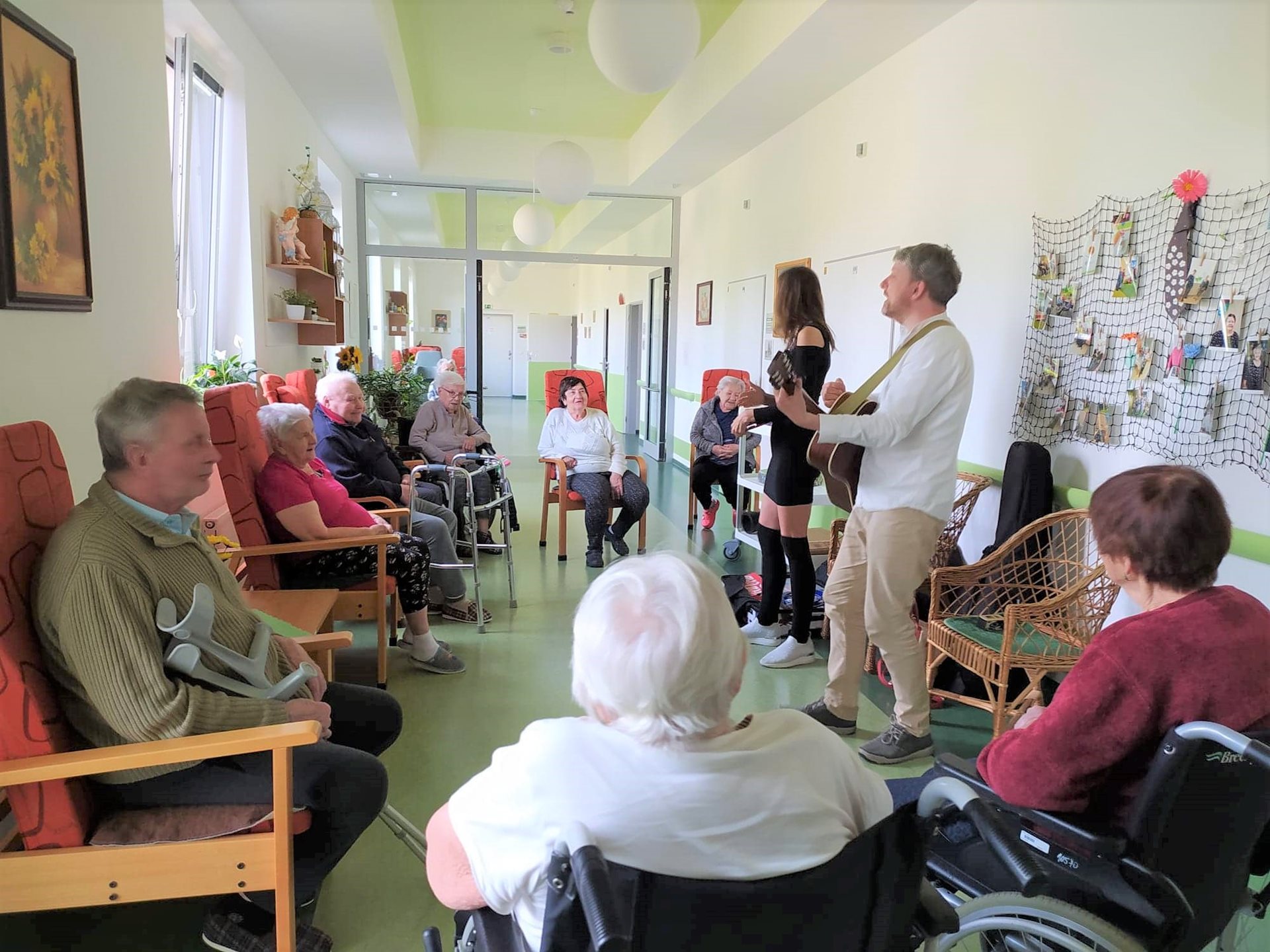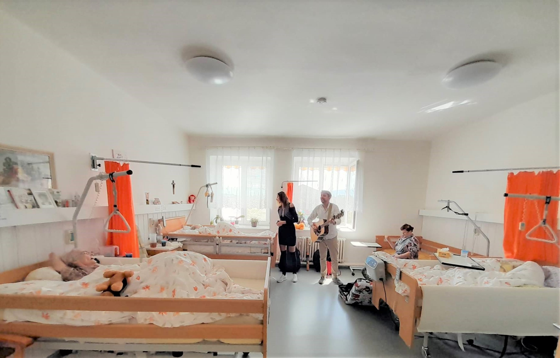 Plný den hudby, písniček a hraní na rozličné hudební nástroje si užili imobilní klienti v úterý 31. května 2022. Muzikoterapeuti Jirka s Ivkou obešli se svými poklady všechna oddělení na obou budovách a přinesli tak našim klientům obrovskou dávku radosti.