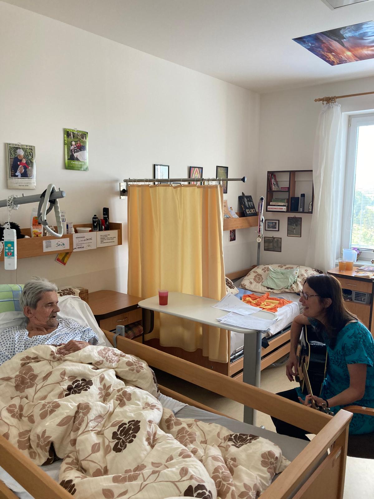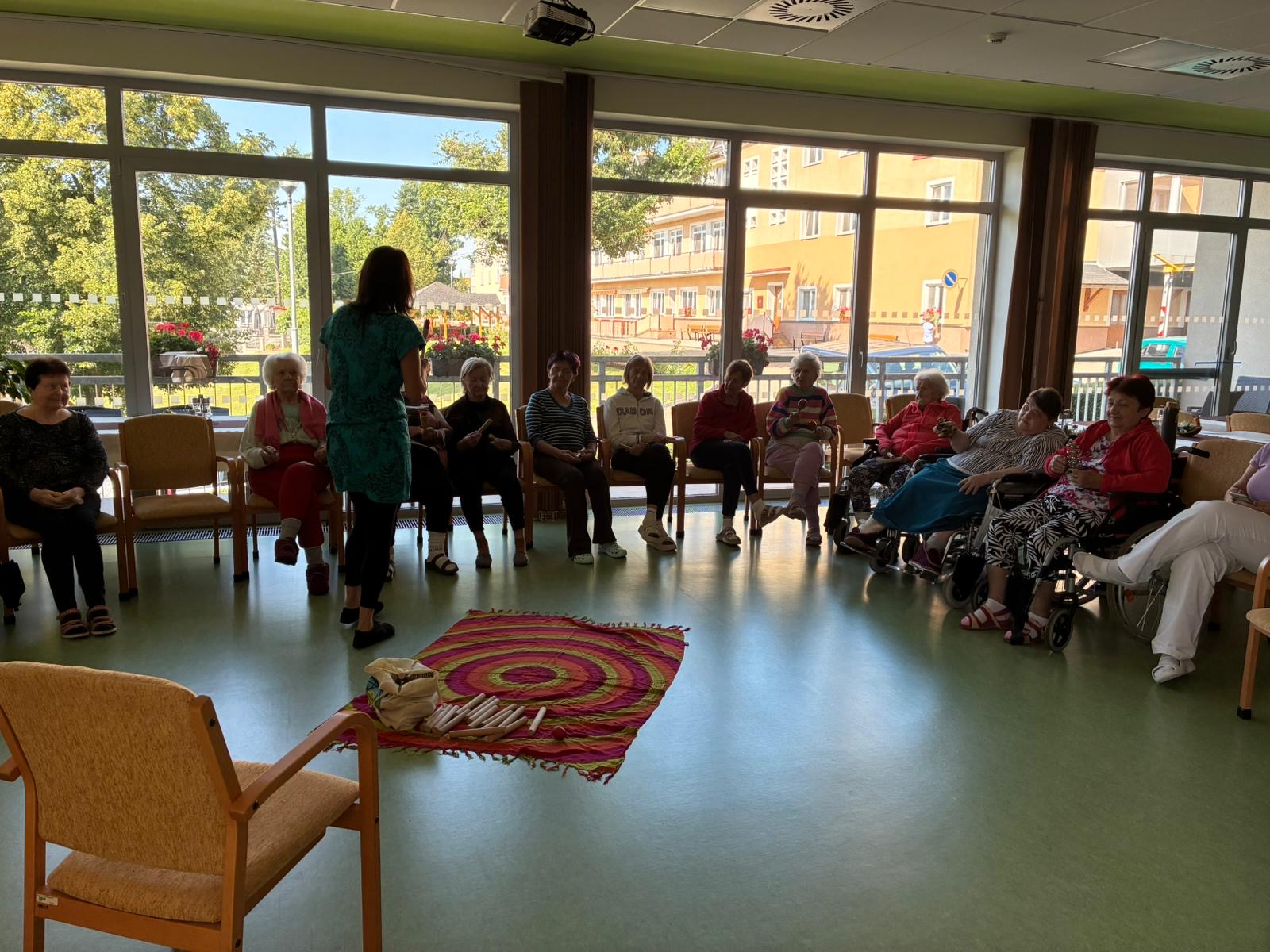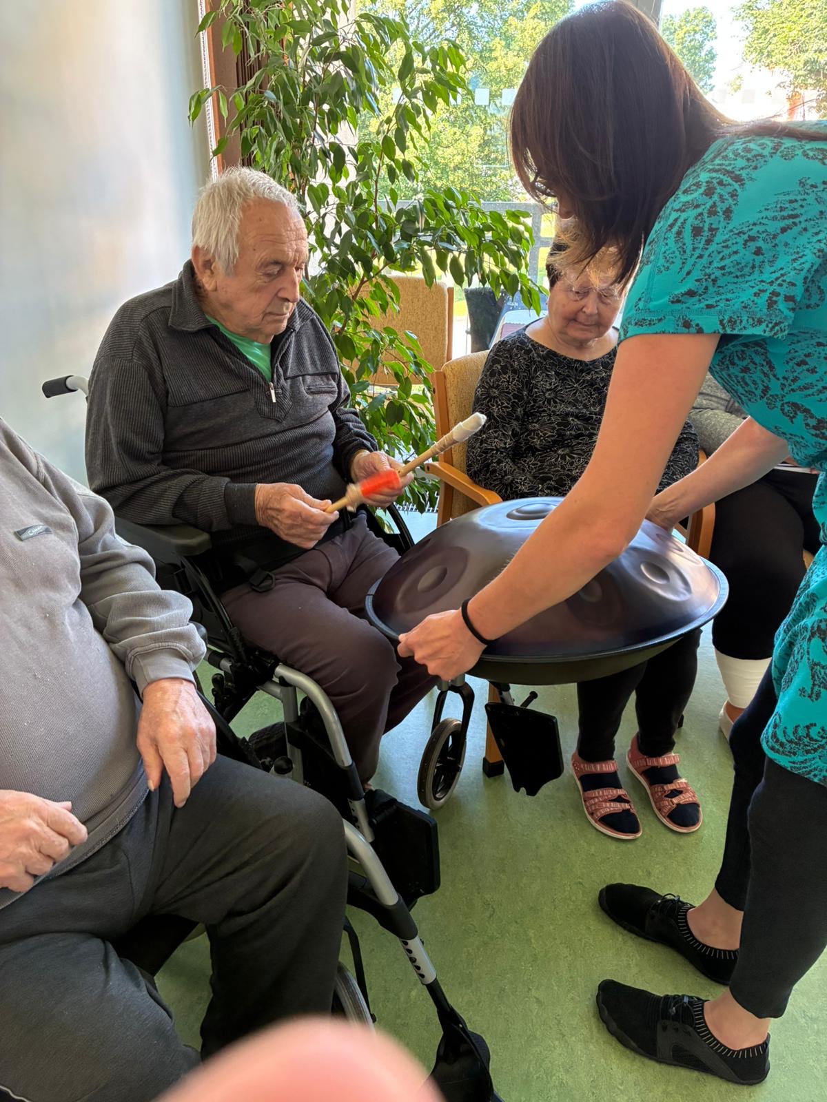 V našem Domově není hudba pouze kulisou, ale také prostředkem pro vyjádření emocí a vzpomínek. Zároveň také přispívá k lepší psychické pohodě. Jsme proto rádi, že nás v pátek 8. července opět navštívila paní Mgr. Alena Svobodová, která nám pravidelně přináší jedinečnou formu muzikoterapie. Její laskavý přístup, cit pro práci se našimi klienty a hluboké porozumění hudbě vytvářejí harmonický prostor, ve kterém se všichni cítí klidně, vnímáni a přijímáni.