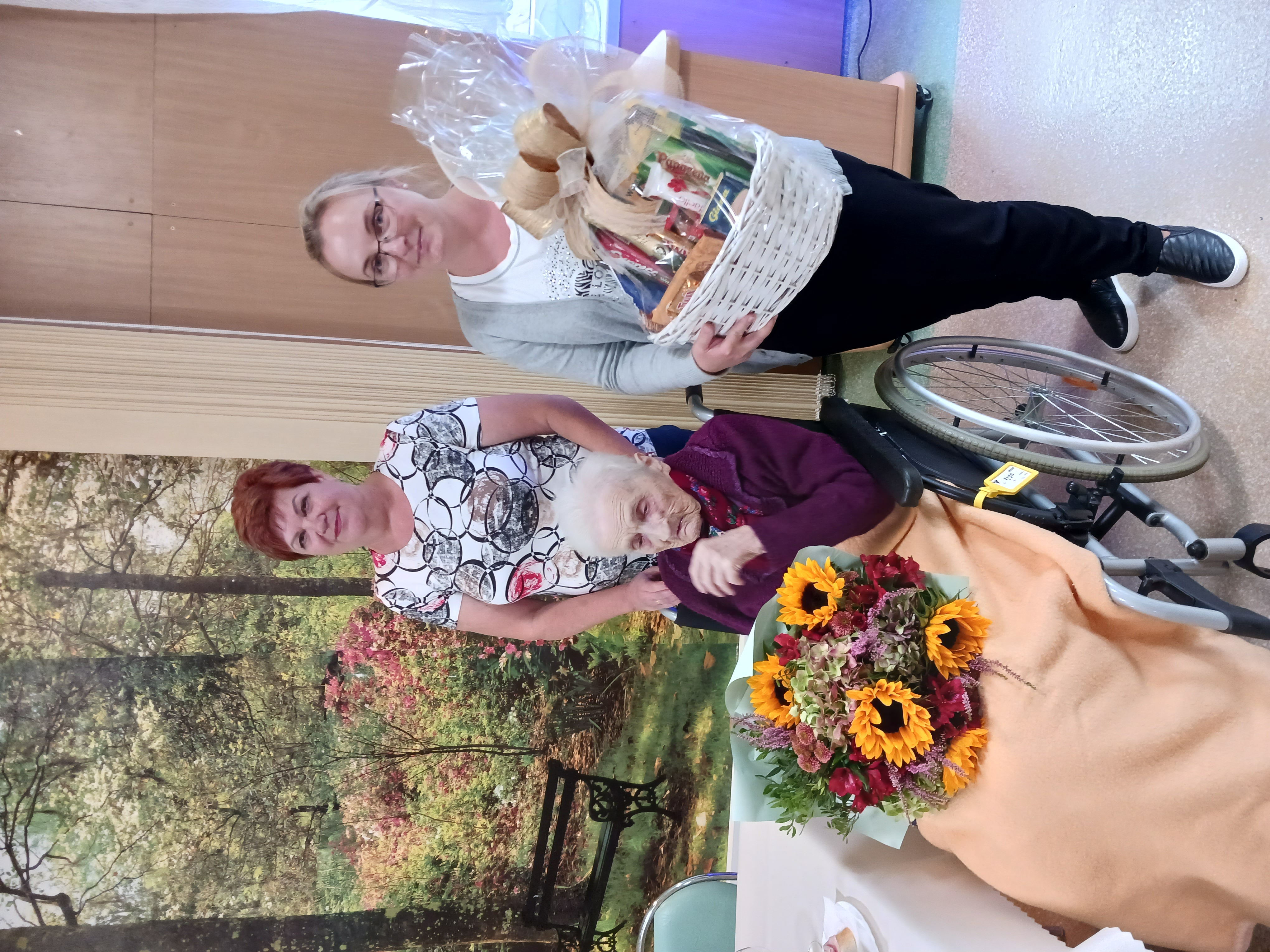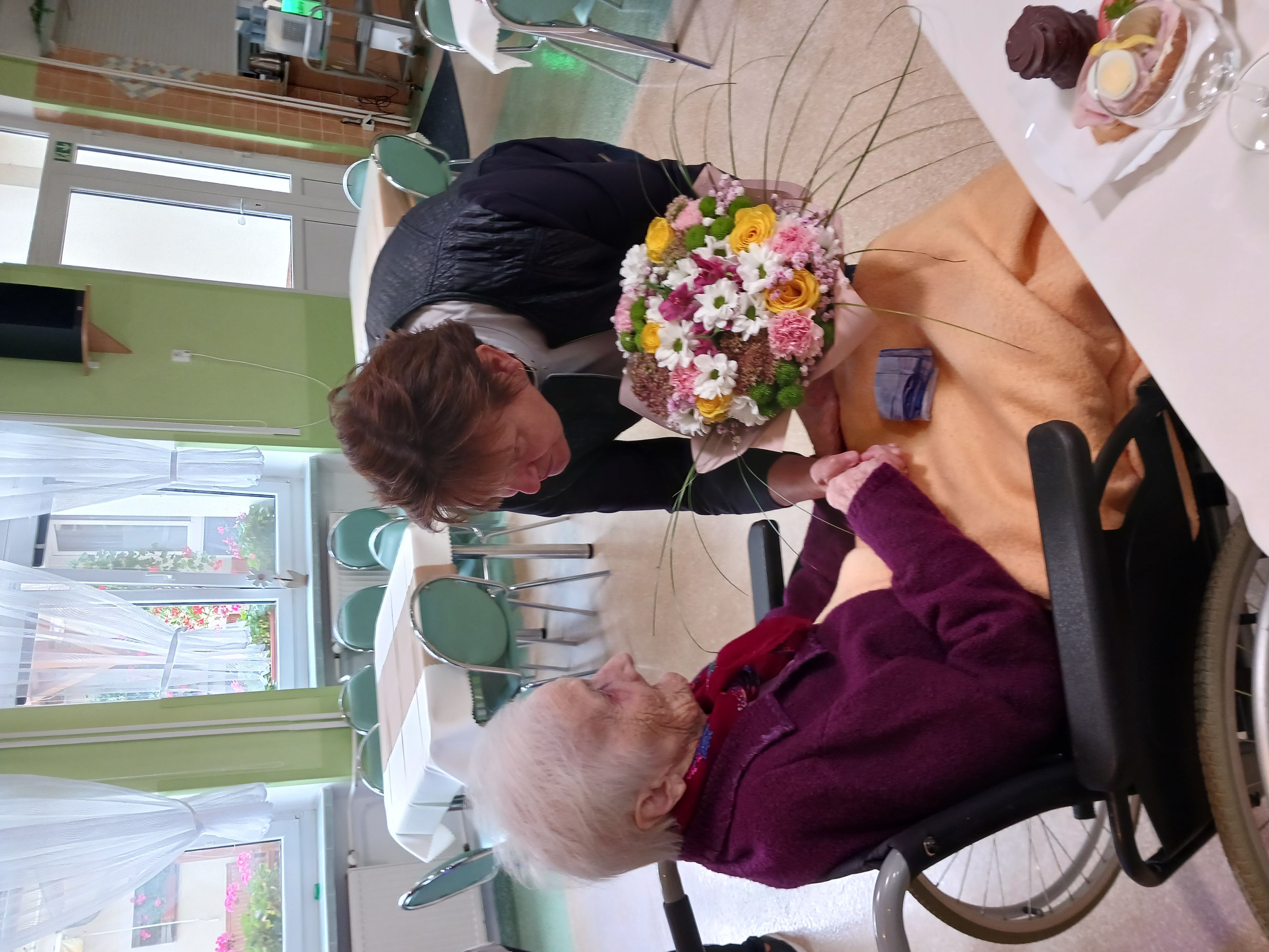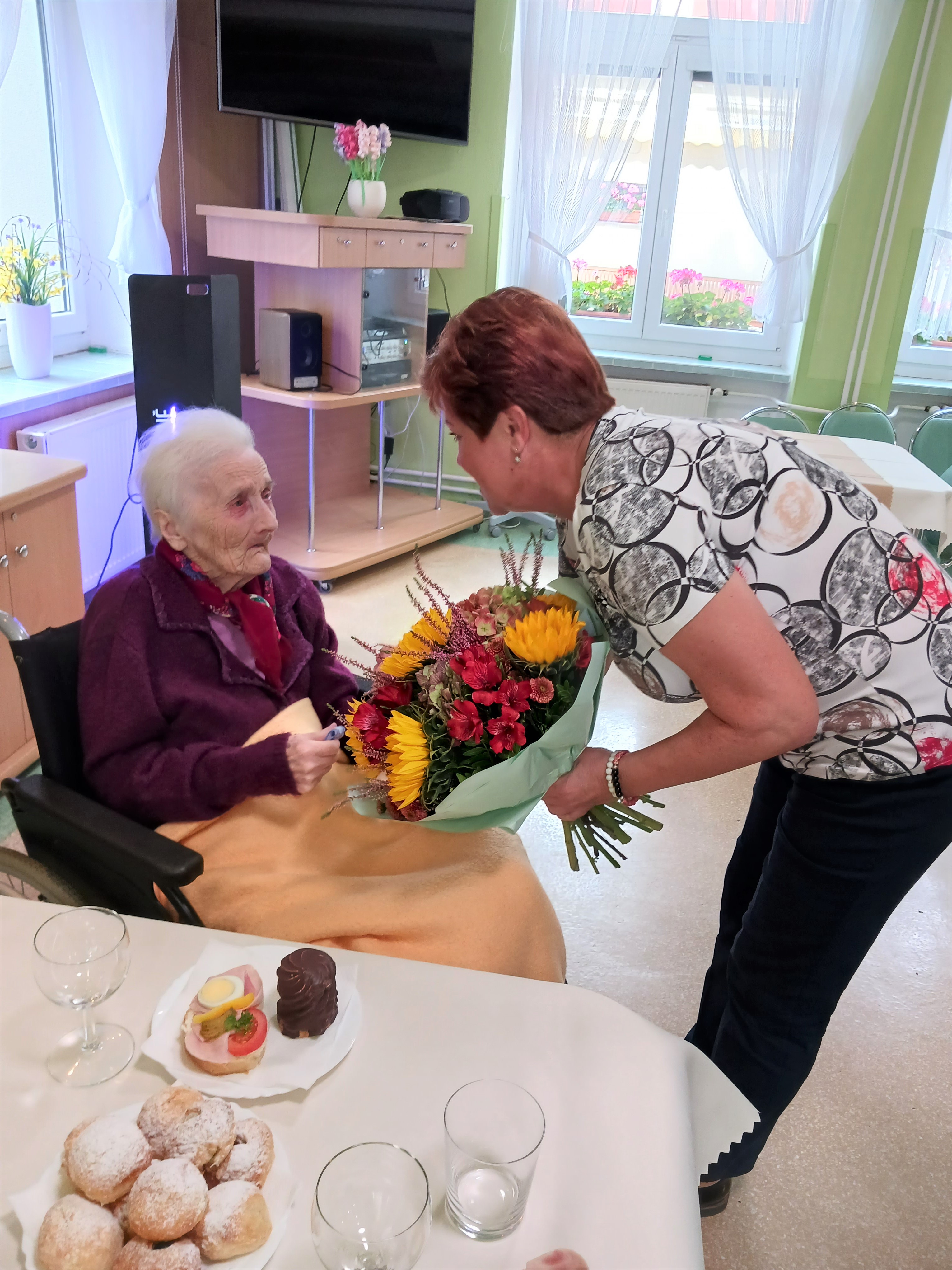 S radostí nás všech jsme oslavili s paní Vlčkovou její 100. narozeniny. Pro oslavenkyni bylo přichystáno u velkého narozeninového dortu, květin a jiného laskavého občerstvení, příjemné posezení s klienty v hlavní jídelně Domova. Ke gratulantům za domov pro seniory se také přidala paní starostka z rodného Nákla.