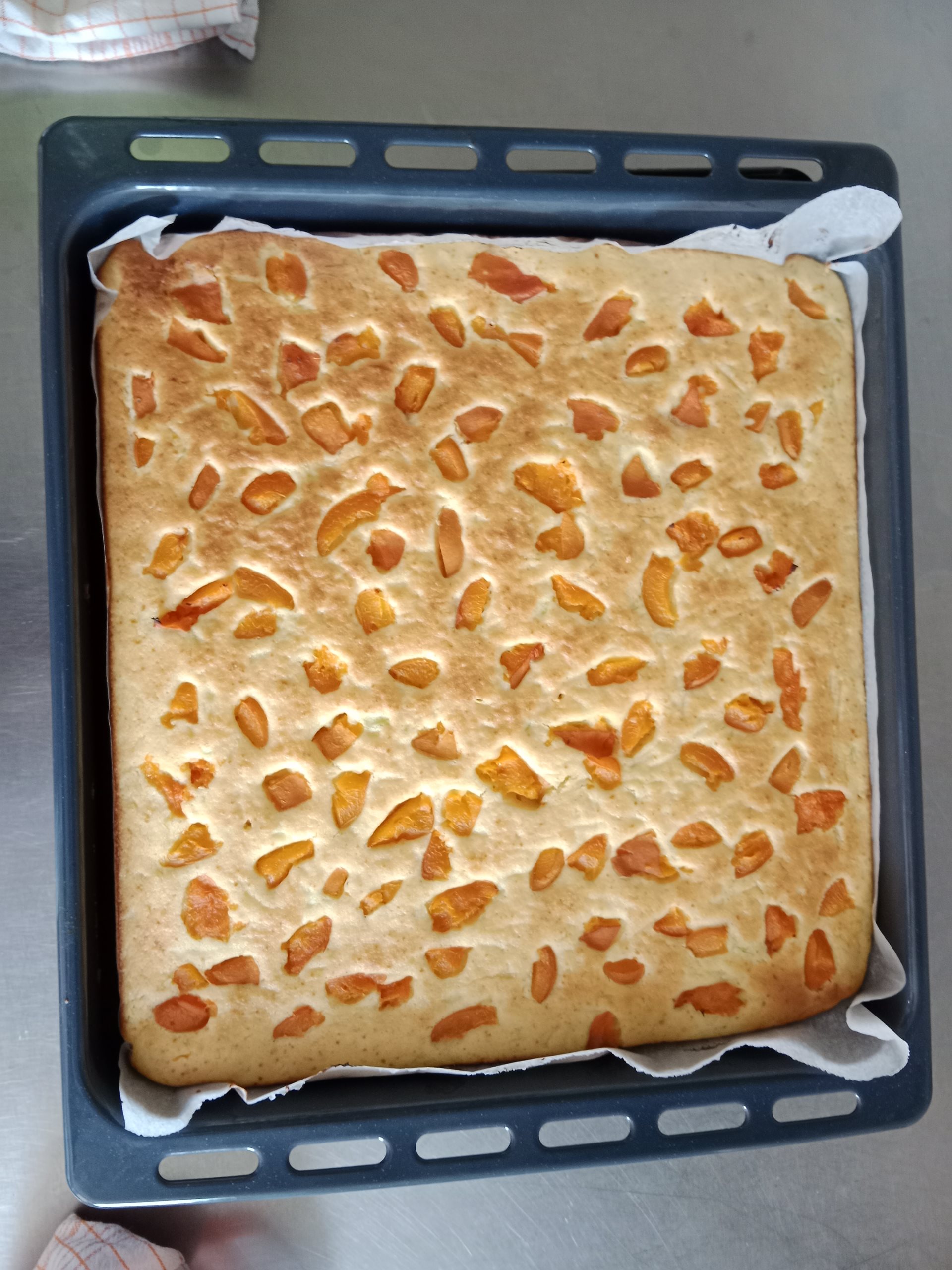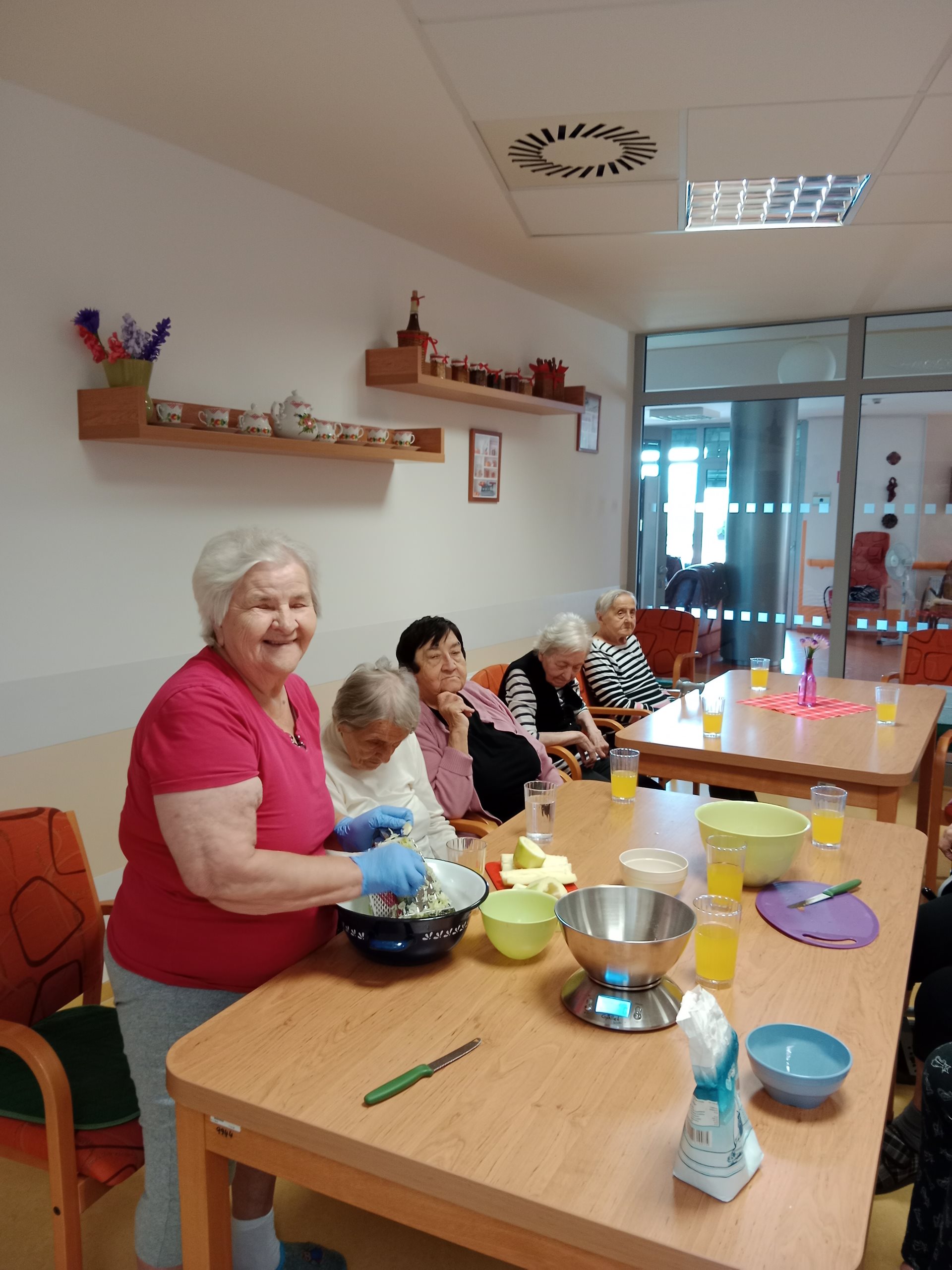 Tentokrát jsme si u nás v domově upekli cuketový koláč s meruňkami. Všem moc chutnalo.