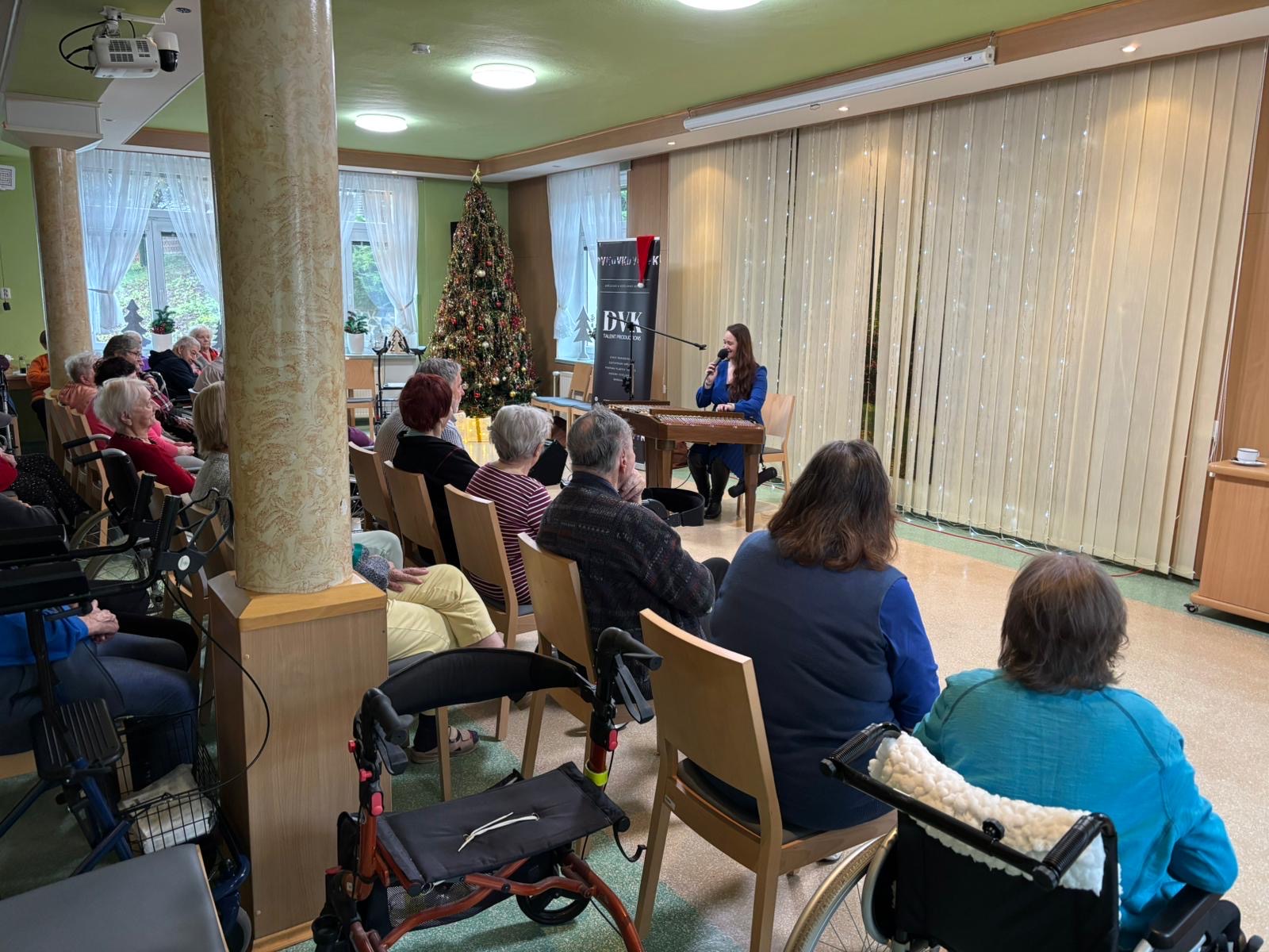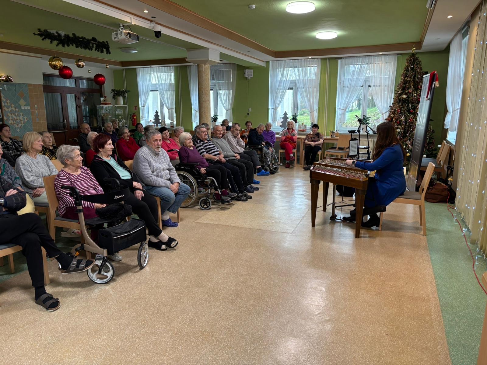 Velmi příjemné setkání nás čekalo ve středu 3. prosince, kdy náš Domov pro seniory navštívila paní Vlaďka Křenková, která se již od útlého dětství věnuje hře na cimbál. Díky jejímu talentu a lásce k hudbě jsme měli možnost zaposlouchat se do působivého hudebního vystoupení, které v sobě spojovalo vánoční koledy, tradiční lidové písně i melodie z oblíbených pohádek.