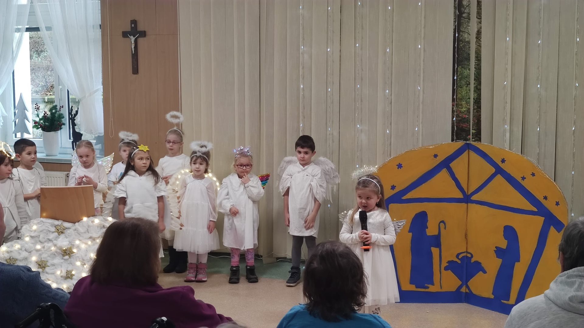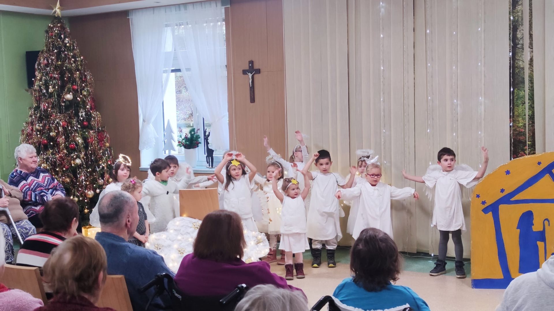 I letos nás na konci roku potěšily svou návštěvou děti z mateřské školy Bezuchov, které si pro naše klienty připravily krásné vánoční vystoupení. Děti se proměnily v malé andílky a zazpívaly nám vánoční koledy, přednesly básničky i zatancovaly. Jejich vánoční besídka vykouzlila nejednomu klientovi úsměv na tváři a my jim srdečně děkujeme za milou návštěvu a radost, kterou k nám přinesly.