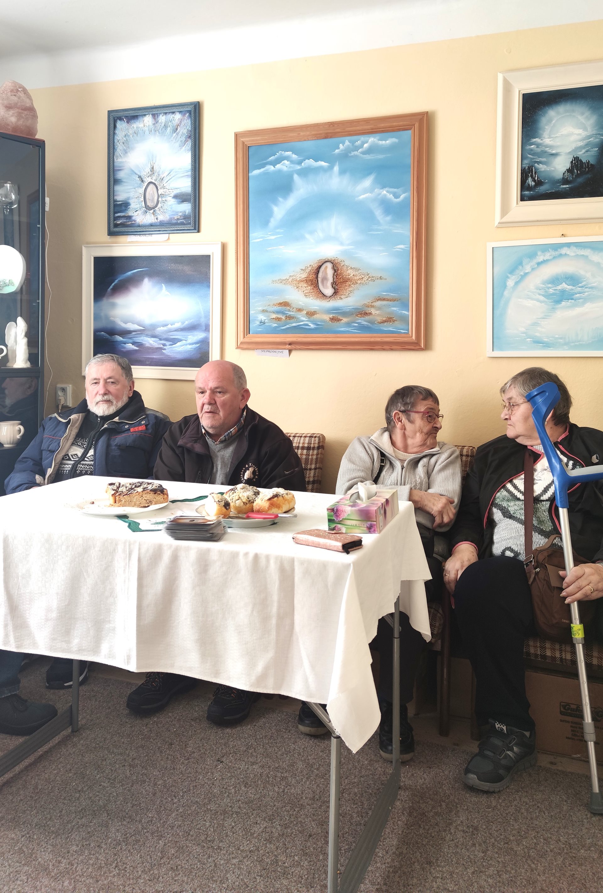 Poté se při zákusku a kávičce příjemně povídalo o umění a velikonočních tradicích.